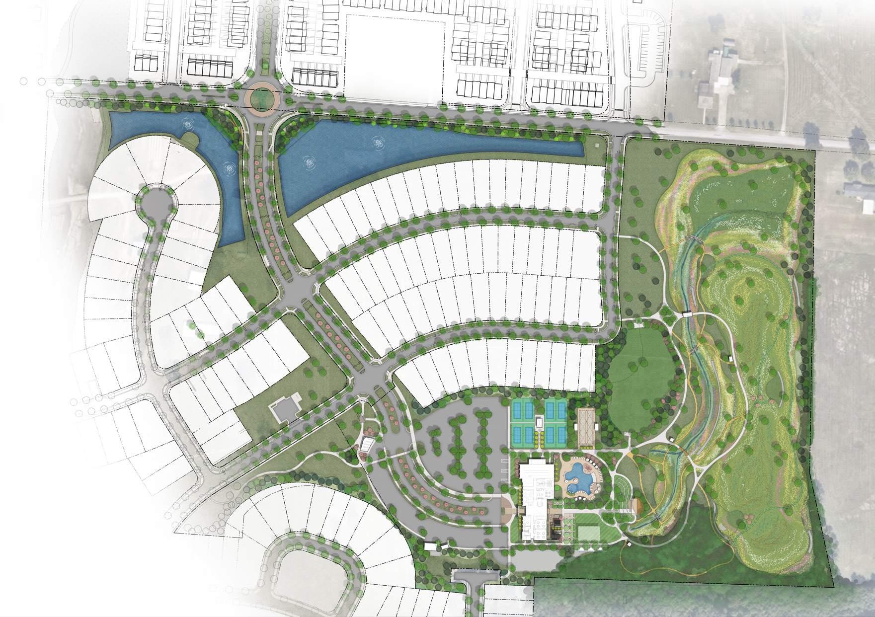 A part of the larger Barton VIllage Master Planned Development, Del Webb Barton Village includes 750 age targeted lots on 350 acres. Throughout the commenity is a connected network of pocket parks, green spaces and trails. The first phase of the project includes the primary amenity, a 16,000 square foot Resident’s Clubhouse called The Station. The site design includes a stormwater management feature for both water quantity and quality that are being displayed with an integrated network of trails The amenity also includes a 3,500 square foot resort style pool, pickle ball courts, bocce ball courts, an amphitheatre, dog park and numerous patio spaces ot encourage social connections.