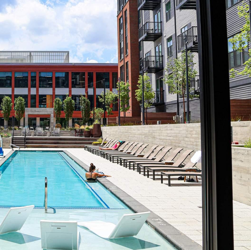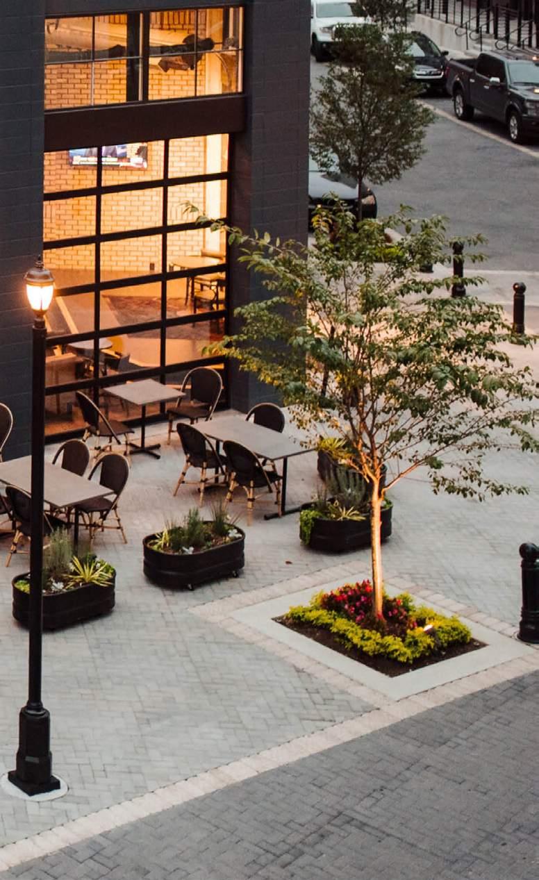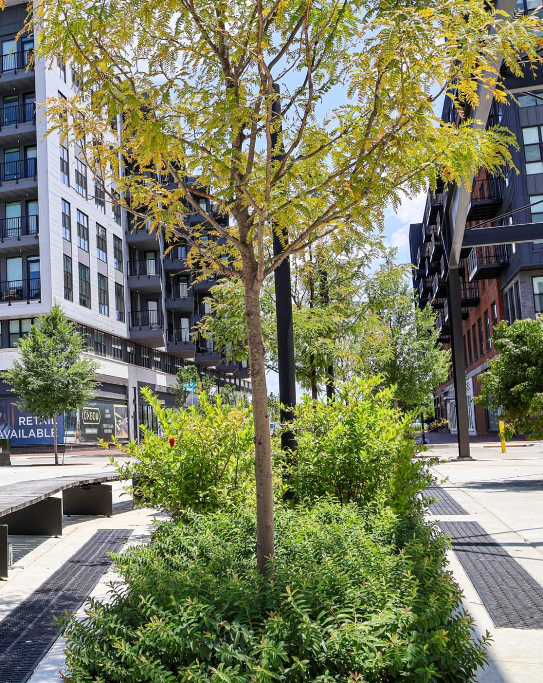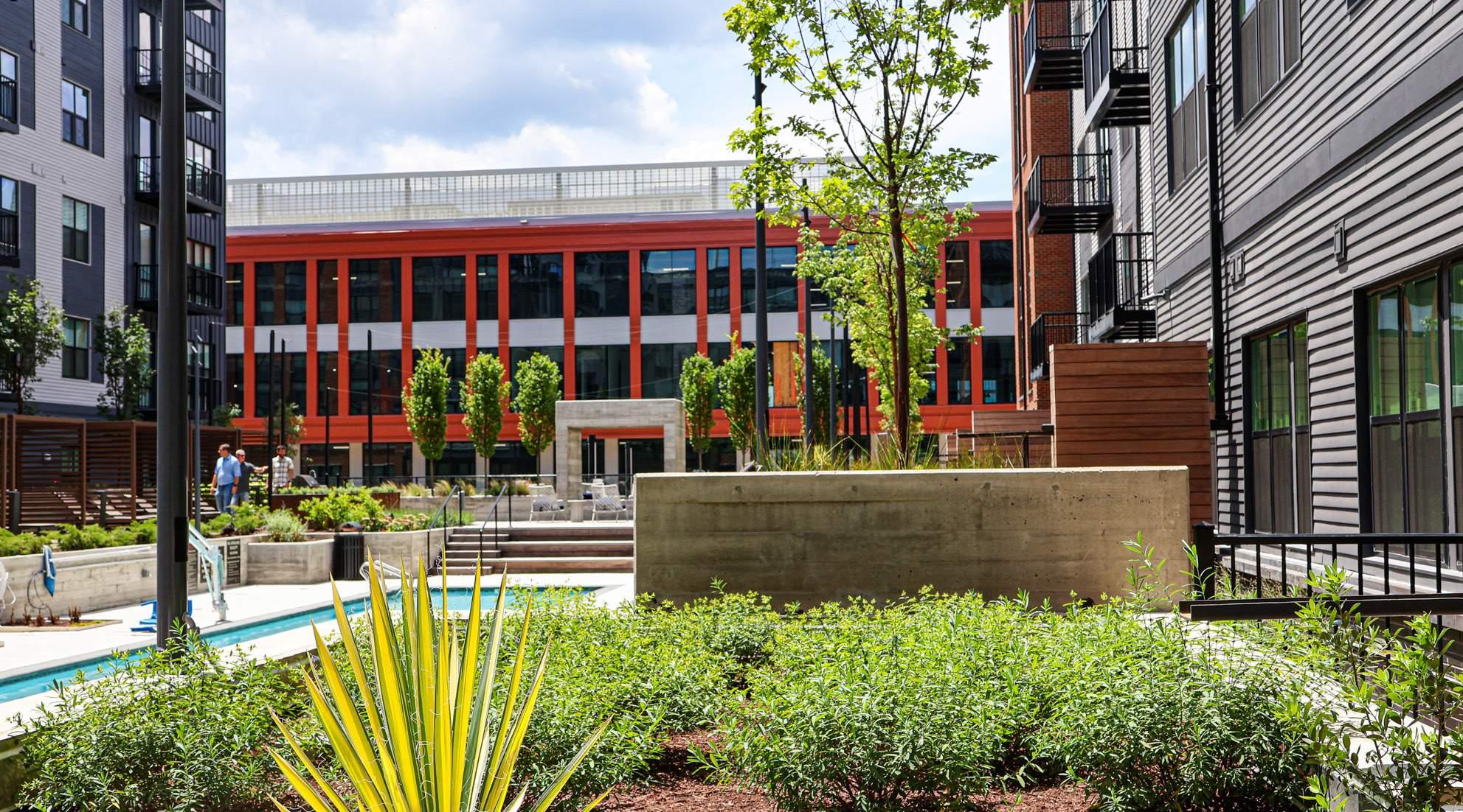 oneC1TY is a unique development with healthy, sustainable, and mindful living at its forefront. The experience for employees, residents, and visitors within the community is carefully crafted by the design team, offering opportunities for collaboration, creativity, physical activity, and reflection. Of the 18.7-acre development, 4.5 acres are reserved green space for public parks, plazas, courtyards, and gathering areas. What was once an underutilized collection of warehouses and light industrial buildings is now a thriving, active, and walkable neighborhood.