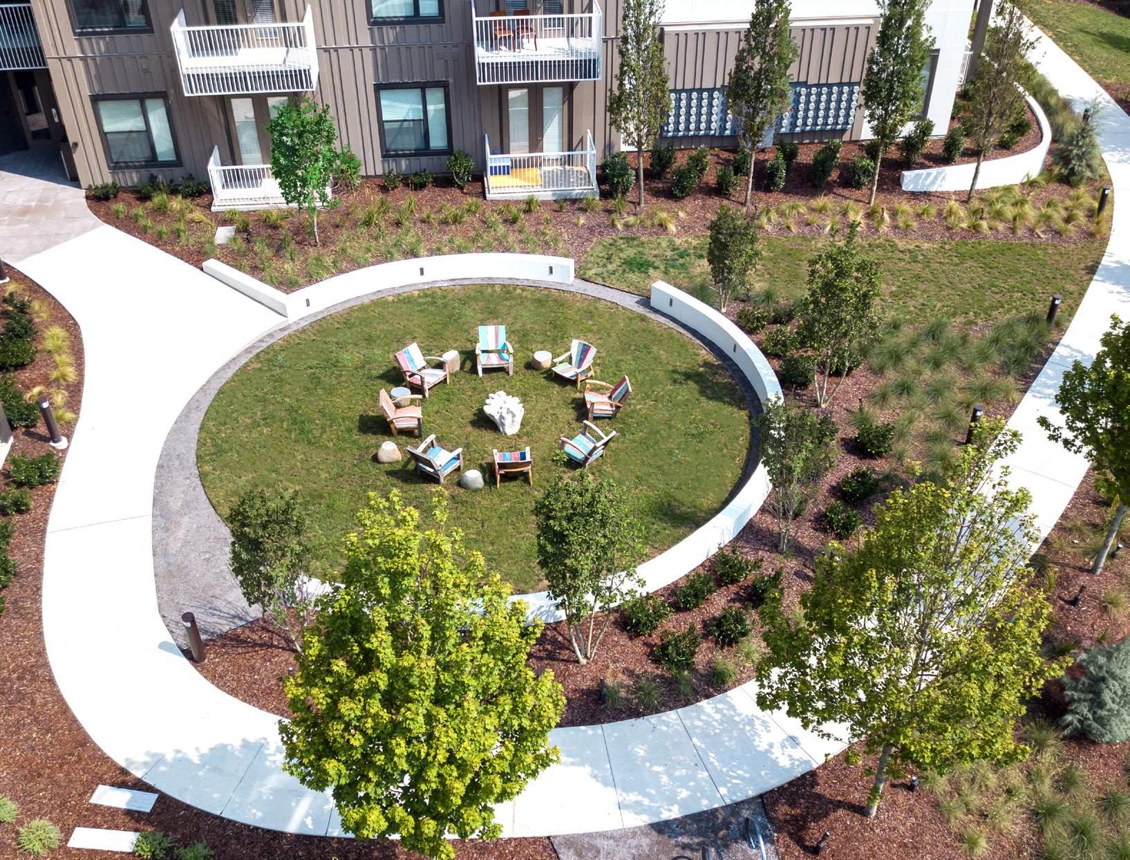 Designed for sustainability, oneC1TY features abundant green spaces throughout the neighborhood and a community lawn that encourages walking, biking, and enjoying the outdoors, as well as music and art. Site design, infrastructure, transportation, and building design have been planned and are being constructed for LEED Neighborhood Development Certification.