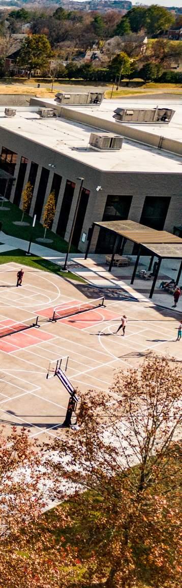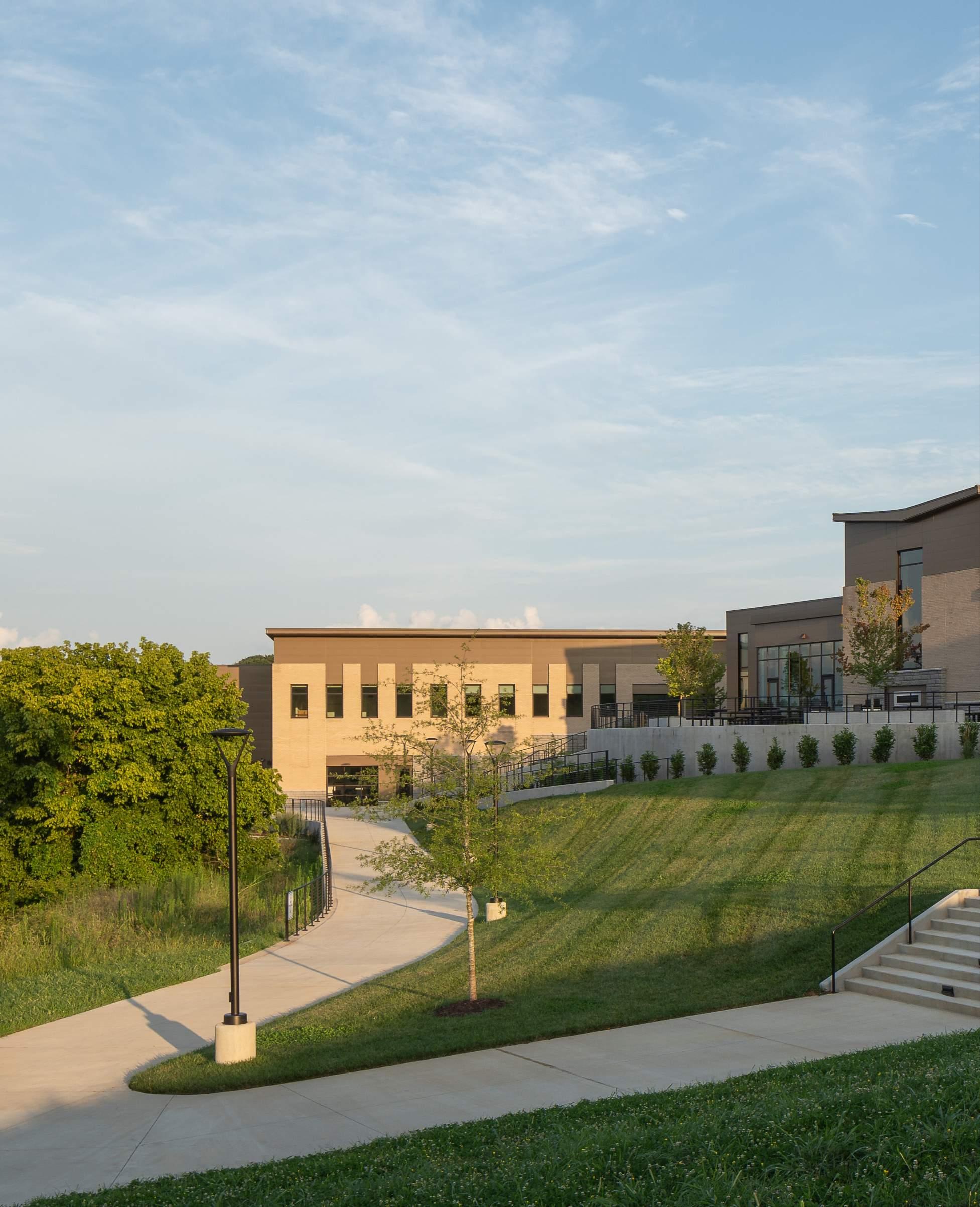 Located in Hendersonville, TN, Long Hollow Baptist Church identified their outdoor space adjacent to their worship center as an underutilized area that needed intentional design. The goal was to create a welcoming and engaging environment where church members and community members could connect throughout the week. Working with Visioneering Studios, CSDG created a master plan to design an inviting and interactive park that would appeal to all ages and have a lasting impact; the project was appropriately named “Legacy Park.” The park includes basketball and pickleball courts, turf grass fields and a new playground. Ample seating along the deck encourages groups to gather for conversation and covered patio areas allow parents to connect while watching their kids play. A focal point of the design is the sculptural “Stones of Remembrance” tower and water feature, where pathways leading from the existing Education Building, Kids Building and Student Building enhance navigation and connectivity. At night, the campus is equally appealing with generous lighting to encourage evening activities.