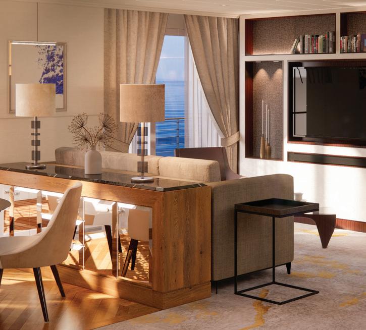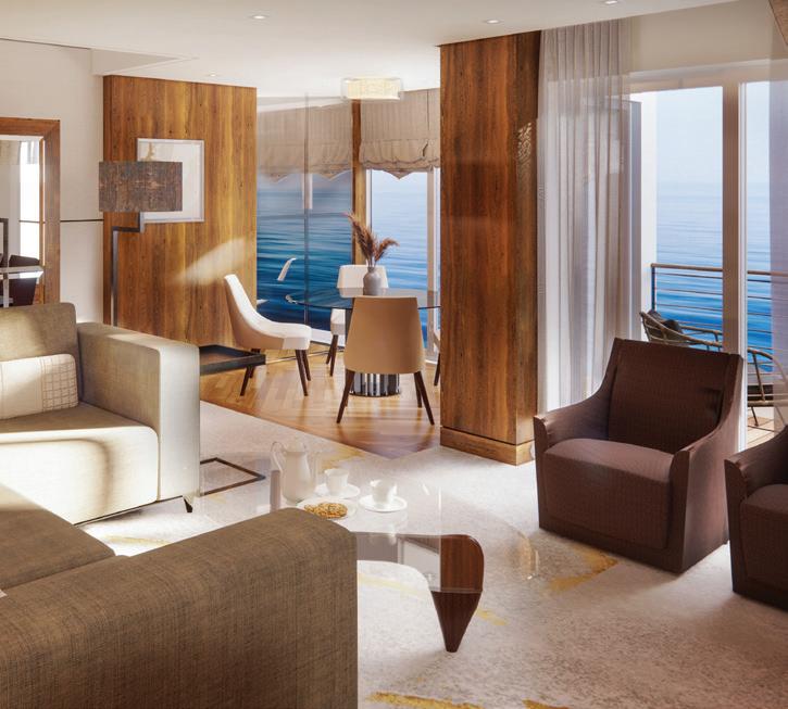 We enlisted the expertise of leading architectural firm GEM to embark on the remarkable redesign of our suites. Under GEM’s steerage, we merged existing smaller staterooms to create harmonious spaces such as the Sapphire Veranda Suite and the Junior Crystal Penthouse Suite. These larger, more comfortable suites offer a superlative experience, from Italian marble bathrooms to exclusive linens designed by Jesurum 1870. Combining fresh, modern aesthetics with a touch of contemporary, classic elegance, our suites aboard Crystal Serenity and Crystal Symphony provide an unparalleled experience on the high seas while maintaining our unmistakable identity.