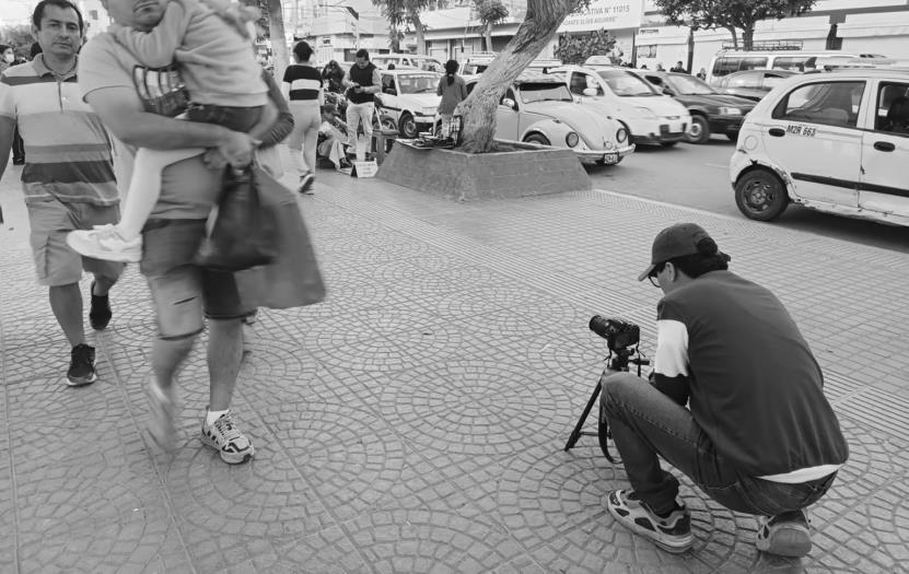 El presente trabajo fotográfico tiene como objetivo documentar y resaltar la vitalidad y dinamismo del centro de la ciudad de Chiclayo. Este proyecto captura las actividades diarias, el constante movimiento y las interacciones que caracterizan esta área urbana, proporcionando una visión integral de la vida en una de las ciudades más importantes de la región Lambayeque, Perú. El centro de Chiclayo es un lugar de gran actividad comercial y social, donde convergen personas de diversas procedencias , edades , estratos , etc. . Es un espacio donde el tráfico, el comercio y la vida cotidiana se entrelazan, creando un ambiente vibrante y lleno de energía. A través de este proyecto, se busca no solo retratar estos aspectos, sino también contar historias visuales que reflejen la diversidad y riqueza cultural del área. Para la realización de este trabajo, se utilizaron métodos de observación directa y entrevistas informales con habitantes y comerciantes del centro de Chiclayo. La fotografía digital fue el principal instrumento de investigación, empleando cámaras semiprofesionales y software de edición para mejorar la calidad de las imágenes. El proyecto se inspiró en trabajos reconocidos que capturan la esencia de las personas en su entorno urbano y destacan momentos decisivos en la vida callejera. Estos referentes fotográficos influyeron en la conceptualización y ejecución del book fotográfico, guiando la visión artística y técnica del proyecto. La secuencia fotográfica incluye 11 imágenes que ilustran diferentes aspectos de la vida en el centro de Chiclayo, desde momentos de calma en el parque hasta el dinamismo del tráfico y la actividad comercial