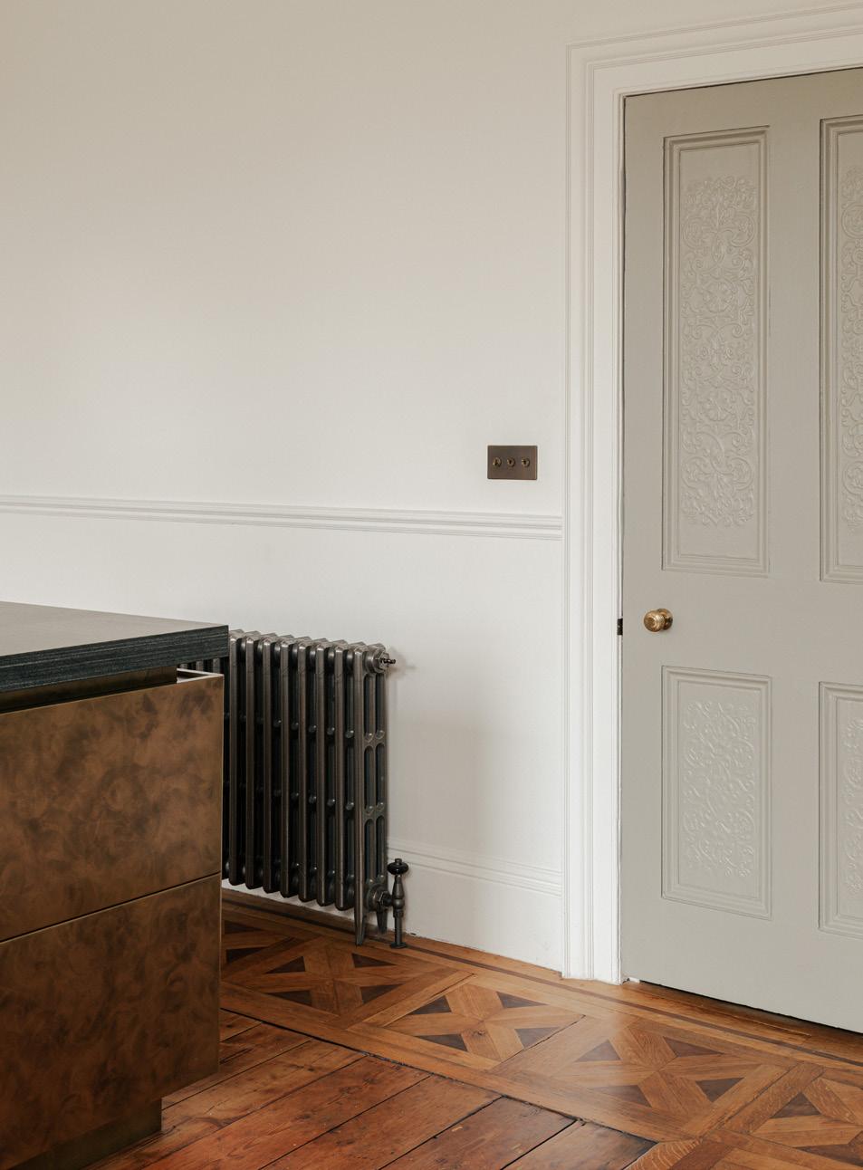 A local joiner was employed to restore the original floor boards and parquet which were in a poor state of repair. New doors were purpose made to exactly match the moulding details left on the few remaining original doors. In turn these original doors were stripped back to reveal the intricate detailing.