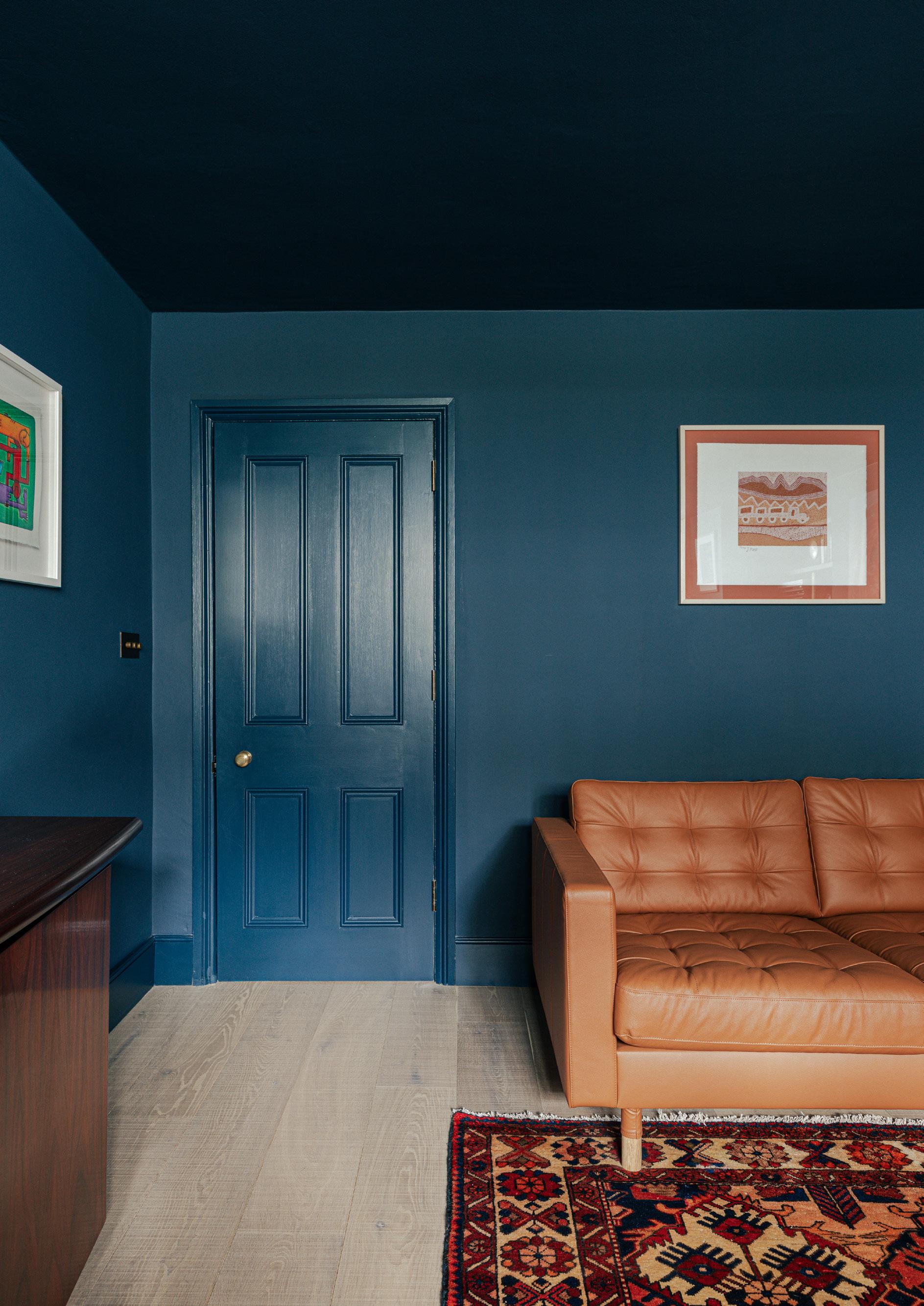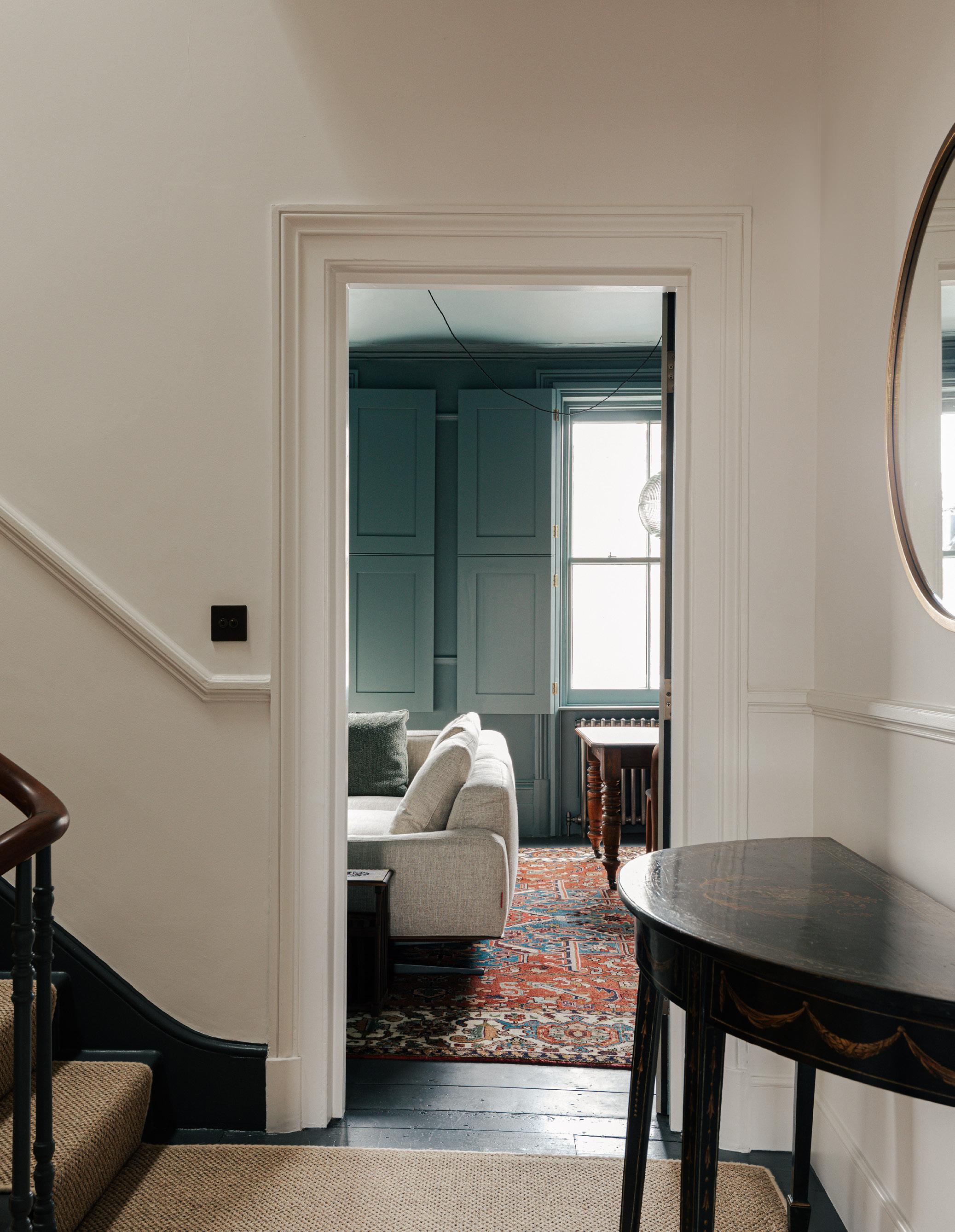 Through the use of colour, views are currently framed and reframed as you move through the house, giving depth to long views across the width of the house. This is a view from the landing at first floor looking into the first floor sitting room.