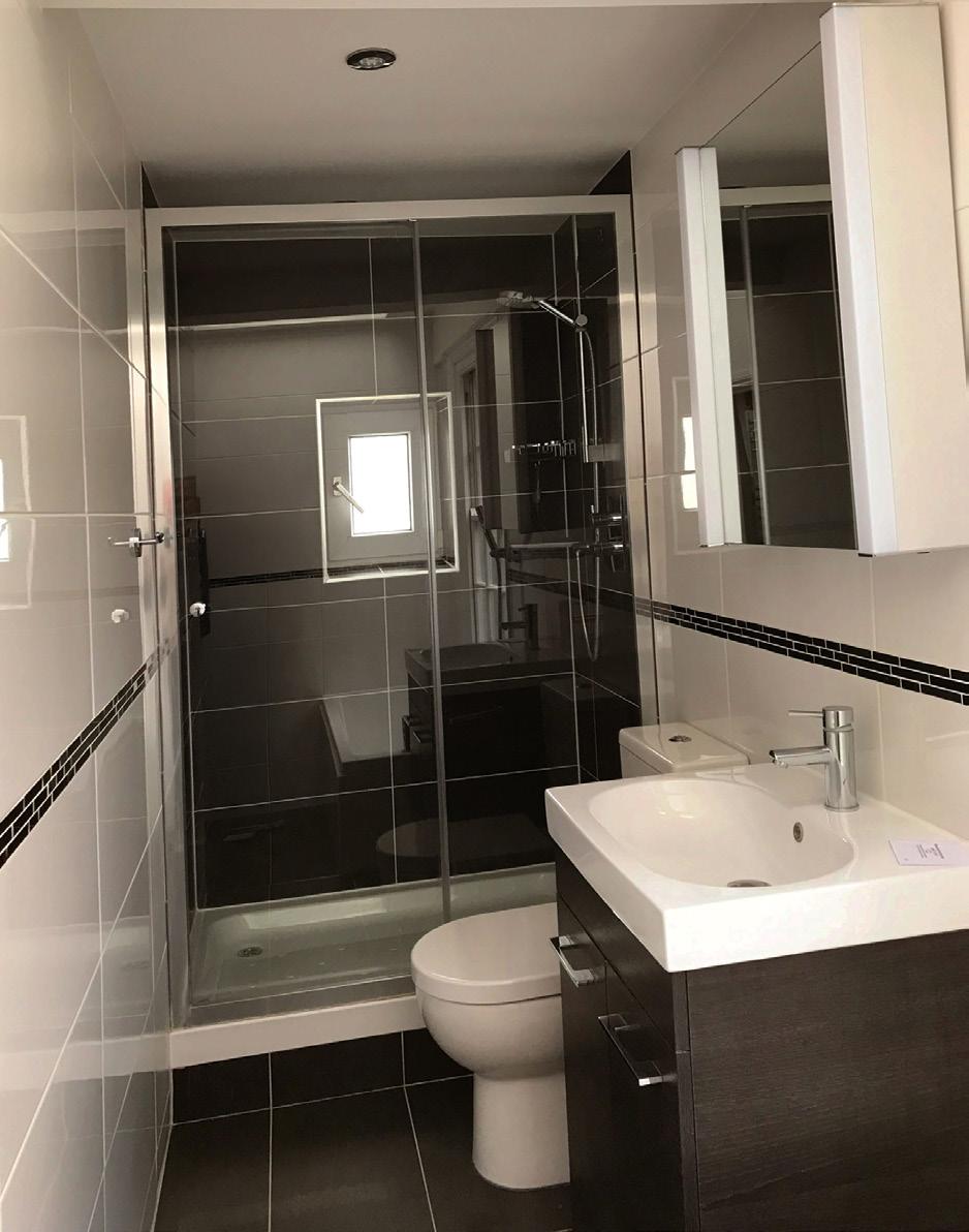 Photo of bathroom as existing. All existing sanitaryware was stripped out and a new palette of materials was employed to create a bright, contemporary room.