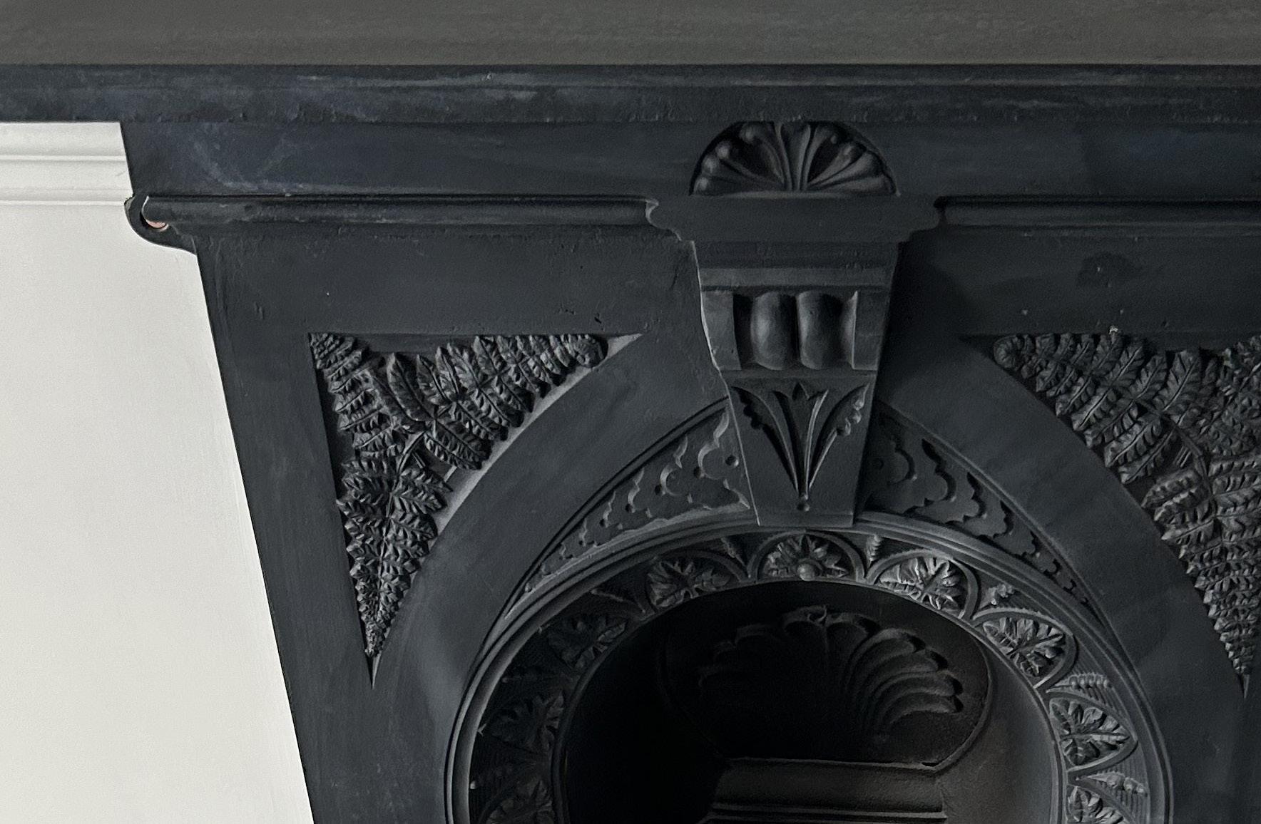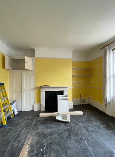 First floor sitting room overlooking the street. Full restoration of original plaster skirtings, panelling, cornices, and fire place. The ceiling rose was fully restored, through stripping away decades of paint layers to reveal the intricate original detail.