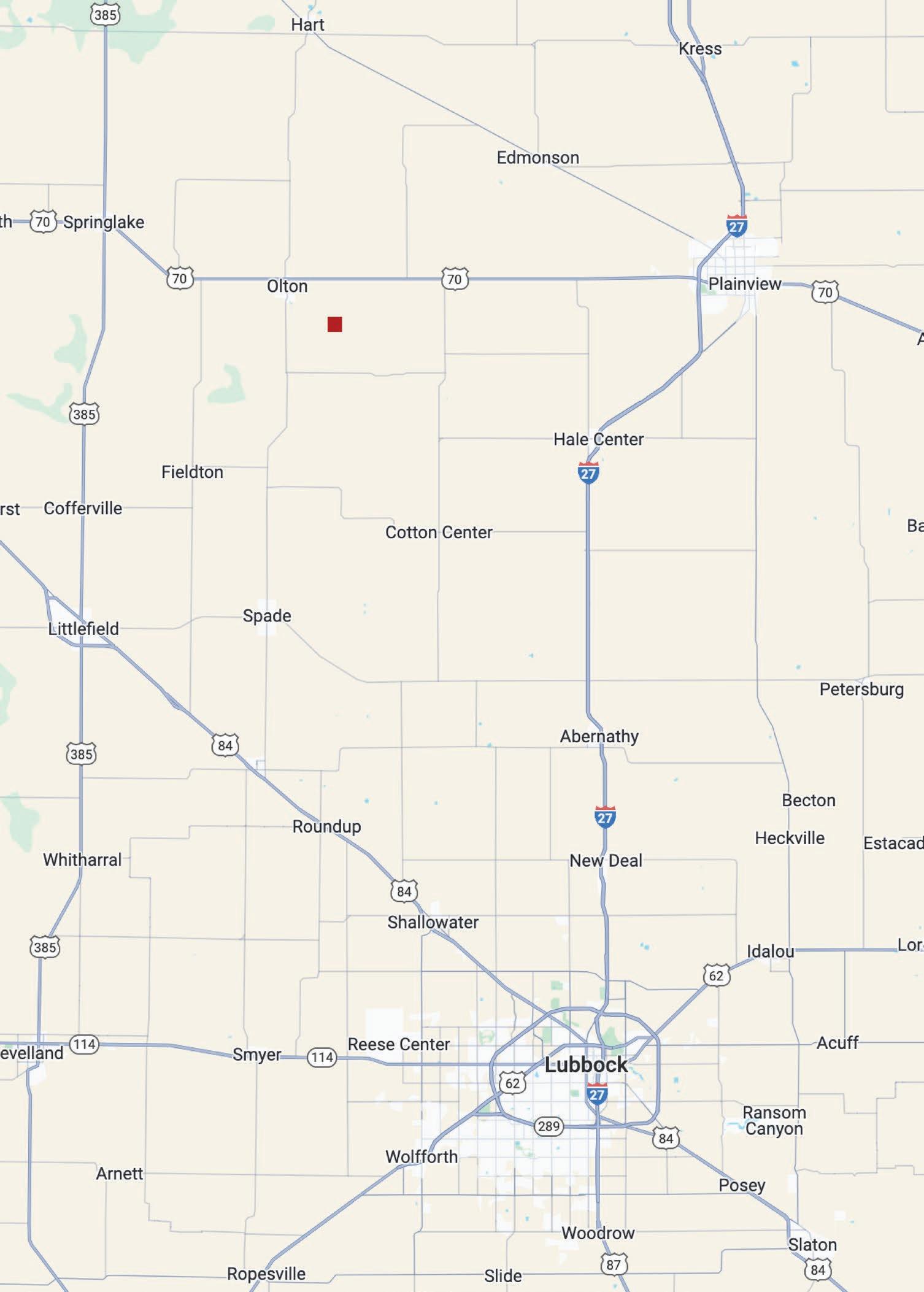 The location of the farm is on the Hale and Lamb County line, approximately 2 miles southeast of the community of Olton, Texas.