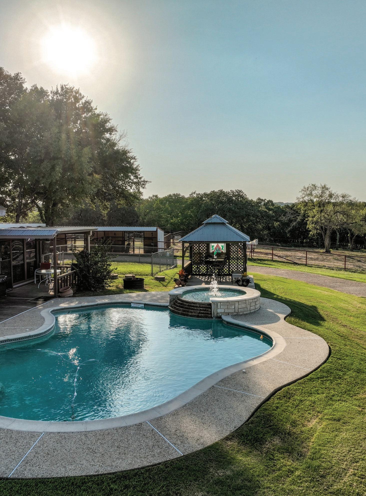 The 3D Horse Property features 15.7 rolling acres that is fenced and cross fenced with pipe and cable fencing into five pastures and traps with an automatic entrance. The property has a nice 3 bed / 2 bath, 2,299 sq. ft. brick home built in the 1970’s. The home features a large in-ground gunite swimming pool and hot tub that overlooks the arena.
