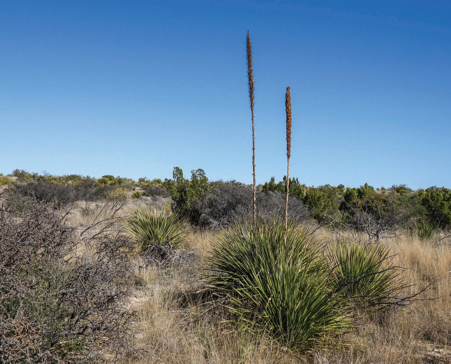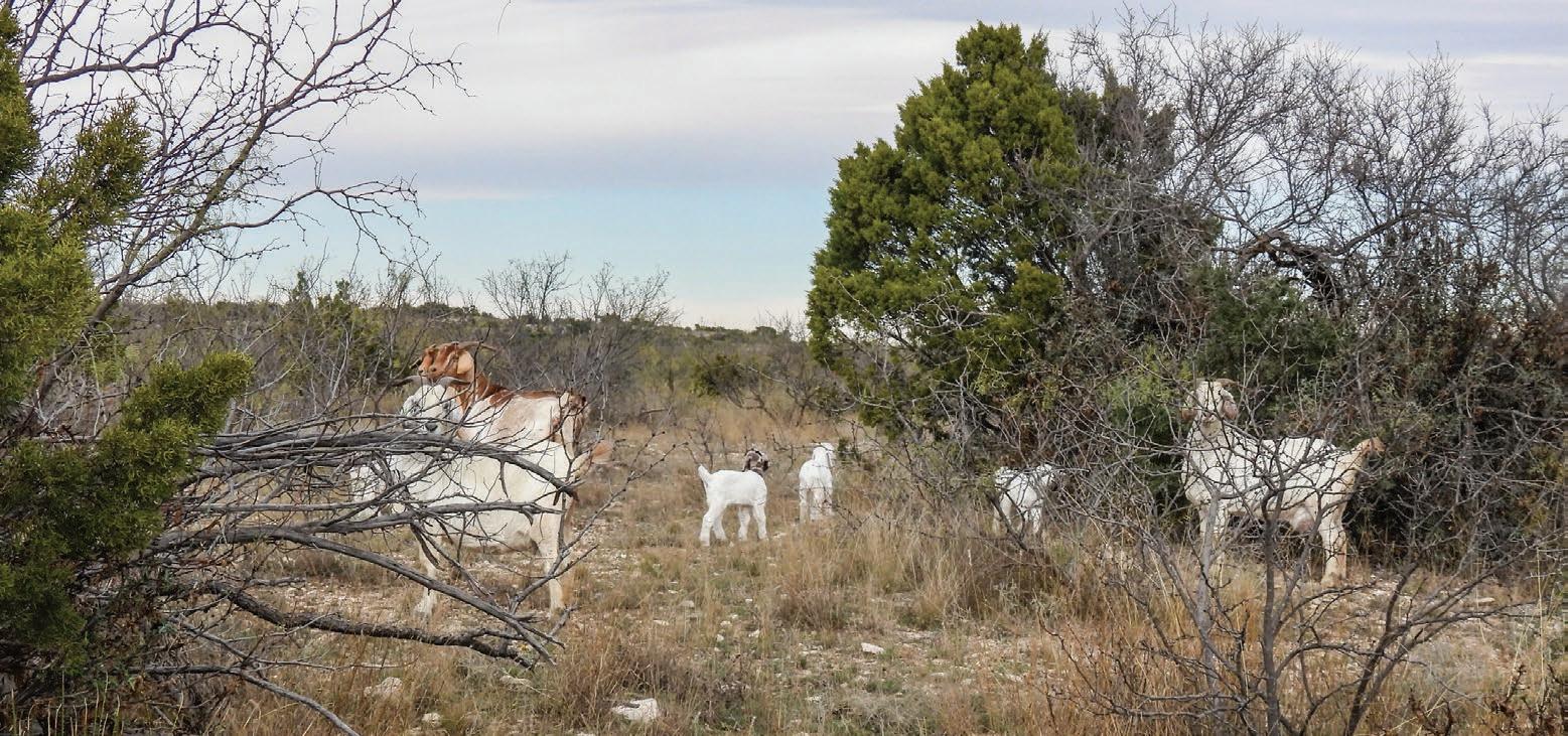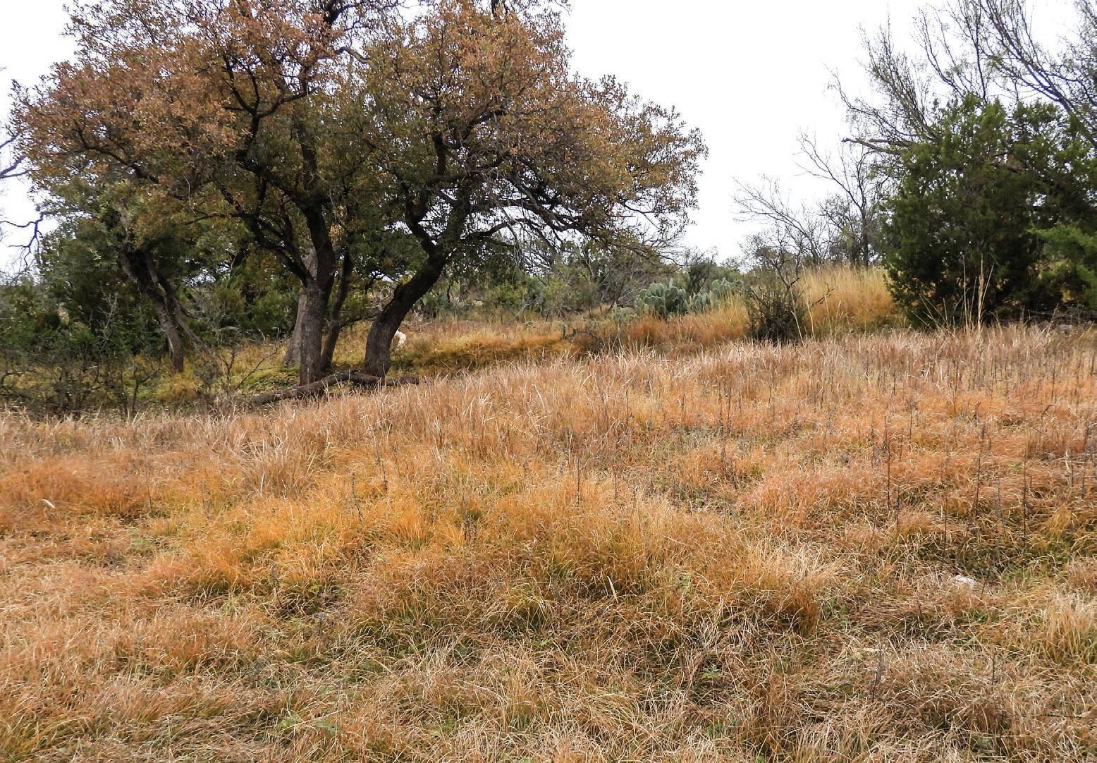 The draws and seasonal creek beds generally have dense underbrush that provides good browse for sheep and goats. Oak, chinaberry, hackberry, and walnut grow along the banks of several of the creek drainages, sometimes in dense groves. The uplands support varieties of native grasses, including bluestems and grama grass, with cover being primarily offered by mesquite with some cedar. Greasewood, being very common throughout much of this region, is not found over much of this property. Other brush consists of yucca, sotol, lotebush, lechuguilla, blackbrush, cholla cactus, and century plants.