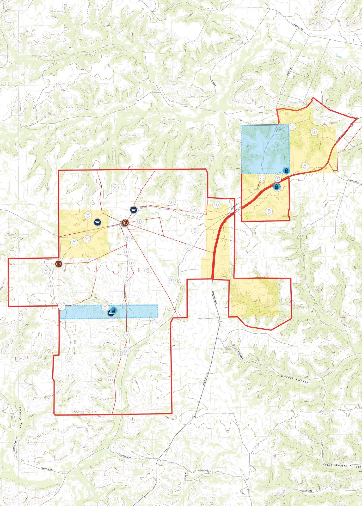 There are approximately three operating gas wells on the property, all located on Classified Minerals Land. Overall, the property has approximately 3,000 acres of State of Texas Classified Minerals (depicted on the map in yellow).
