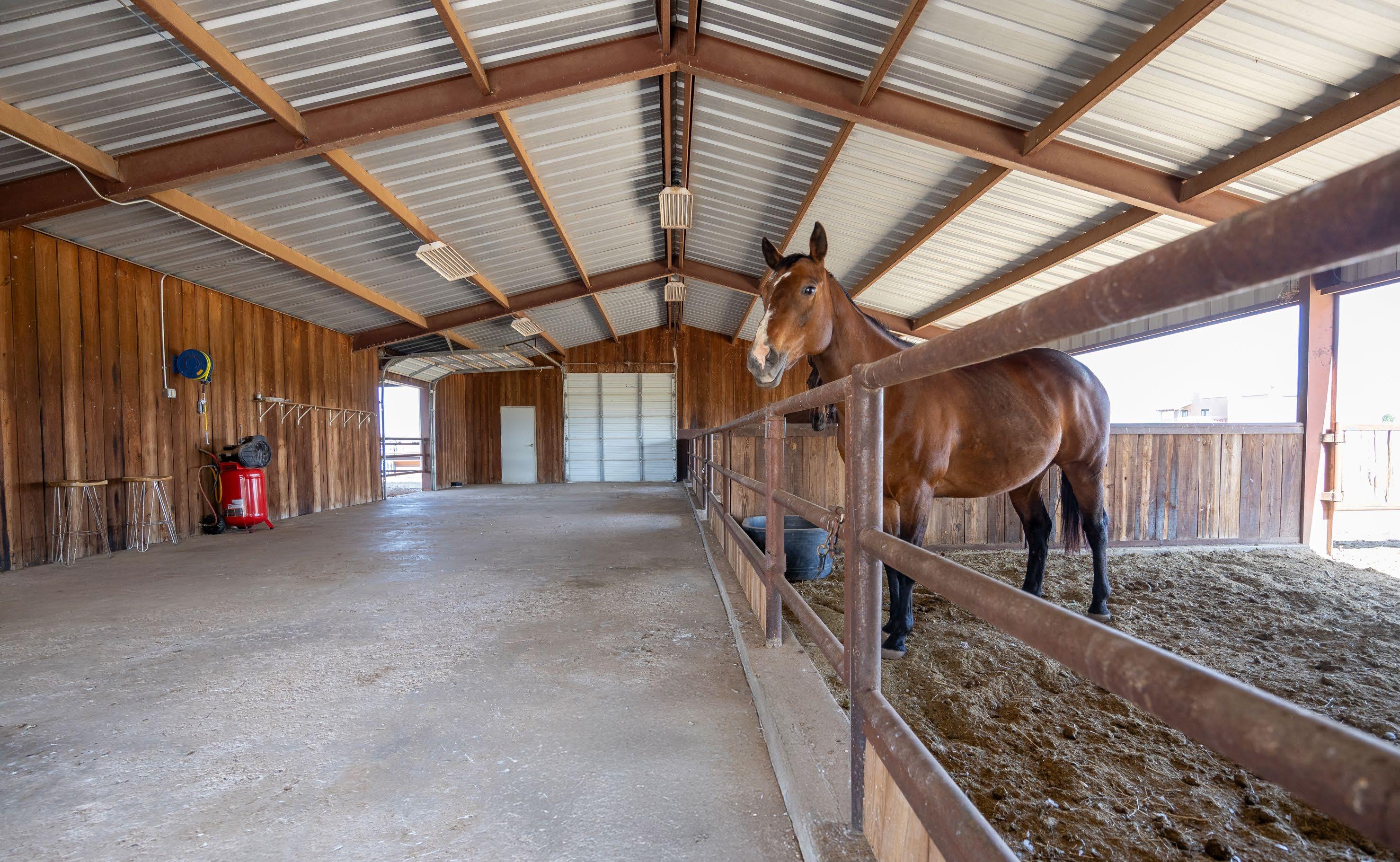 The horse facilities on the property are excellent and feature a nice barn that has a concrete aisleway and three large run-style stalls with automatic waters, three covered runs off the north side of the barn, and an additional three non-covered runs on the east side. There is a 125’ X 250’ pipe arena with a return alley, cattle holding pens with a loafing shed, Priefert air chute, and boxes.