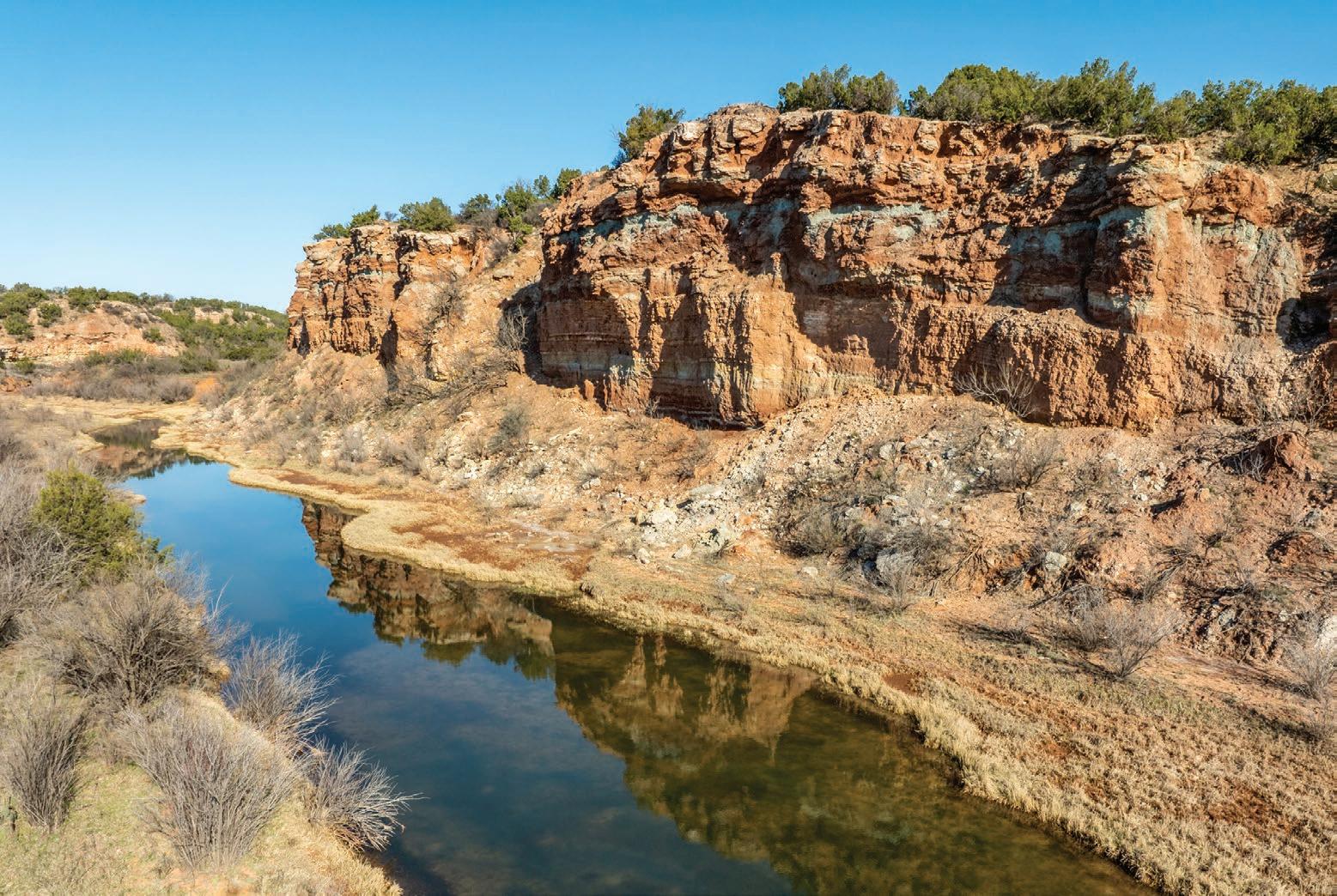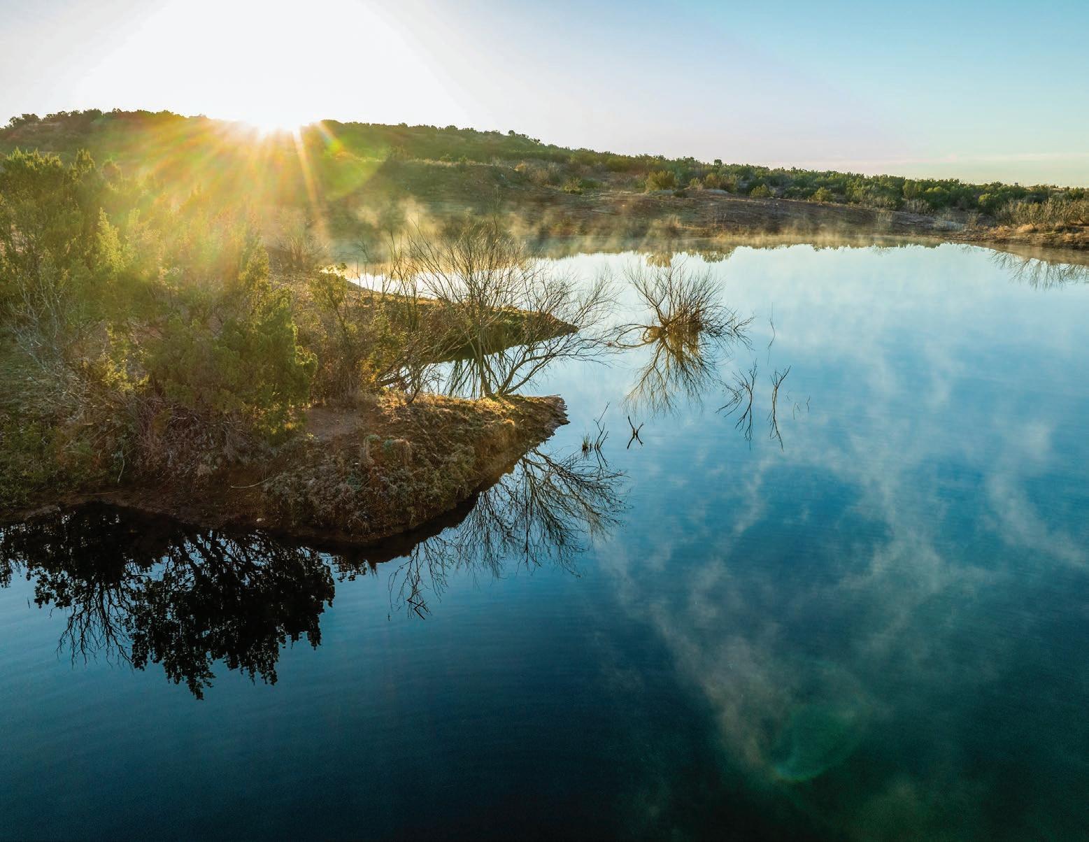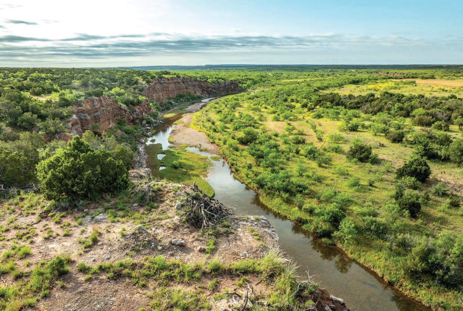 The South Pease River has live spring water feeding the river in this area. There are two spring fed ponds stocked with fish on the property. Both ponds hold water even under severe drought conditions. The ponds are deep and wind through the canyons, offering truly remarkable water features for this area of Texas.