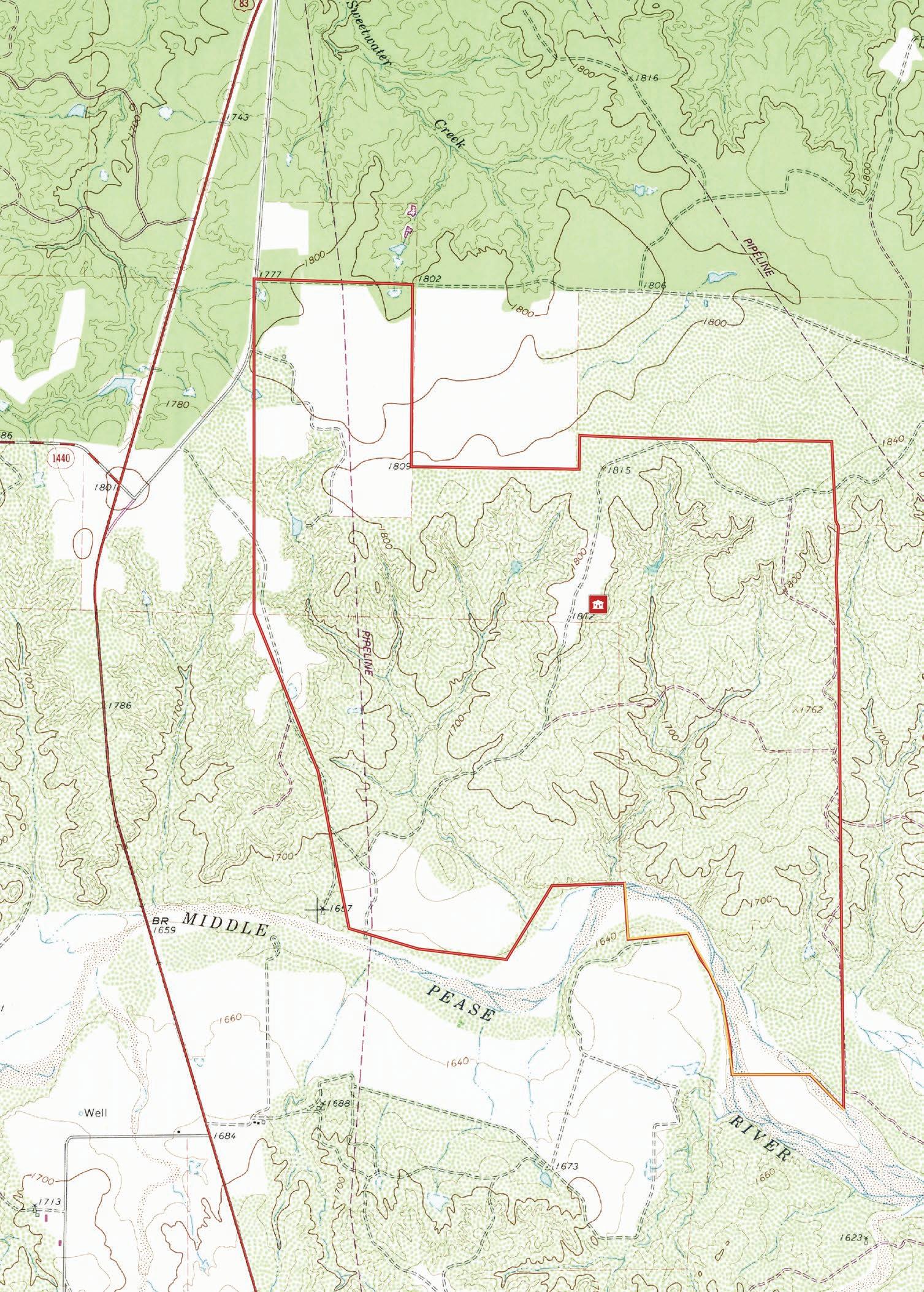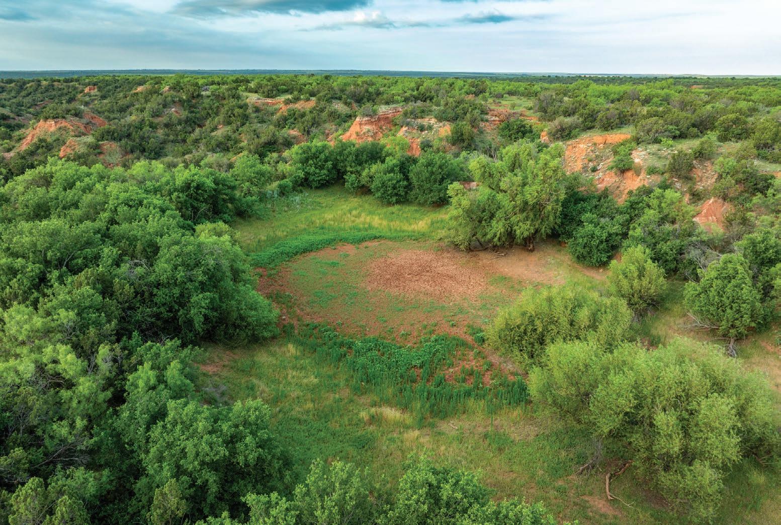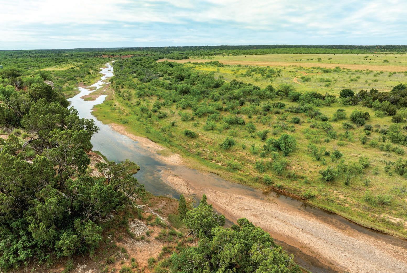The Burdett River Ranch is a highly improved hunting ranch with a main lodge constructed in 2013. This lodge structure measures 40 ft. x 80 ft. and consists of 2,764 sq. ft. of living area, including 3 bedrooms, 2 bathrooms, and a 320 sq.ft. loft that is perfect as a game room or sleeping area. The remainder of the lodge is for storing ATVs and hunting equipment. The lodge is being offered turn-key with stove, oven, microwave, refrigerator, washer/ dryer, and all furnishings. The lodge overlooks the South Pease River Valley and one of the beautiful spring fed ponds, along with the numerous canyons that feed down to the river. The fencing and road work is first class providing access to most every part of the ranch.