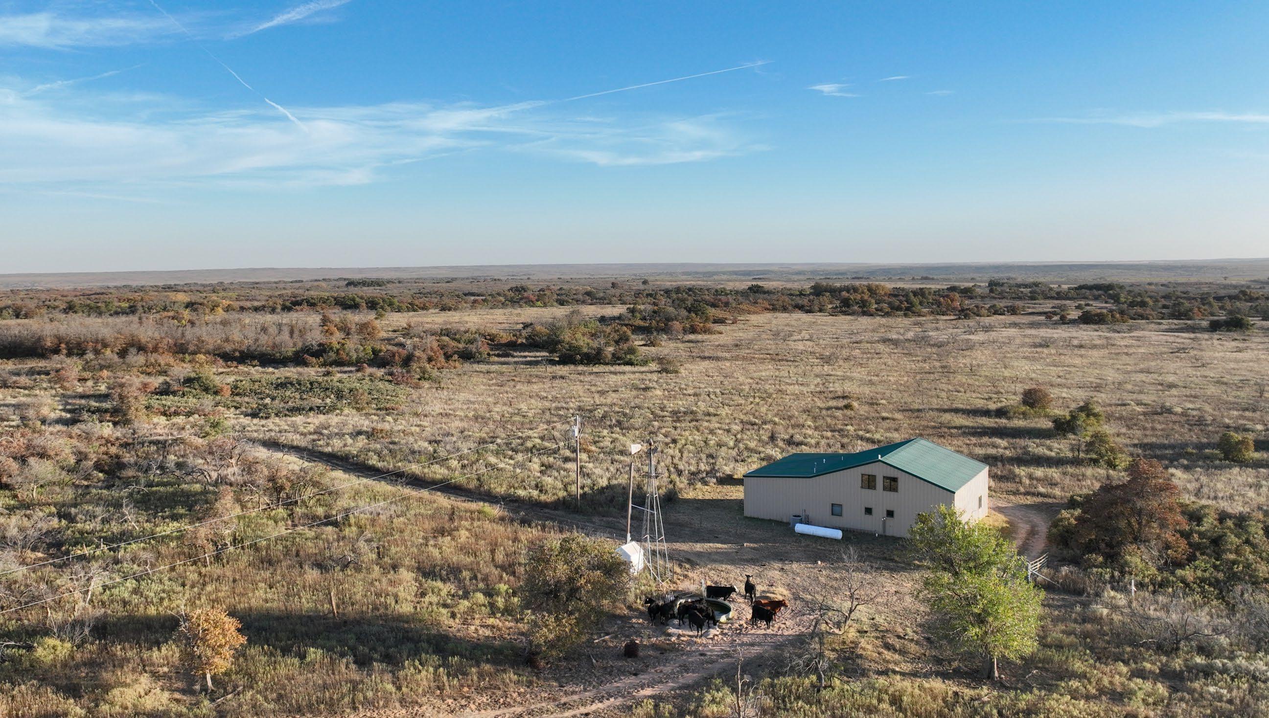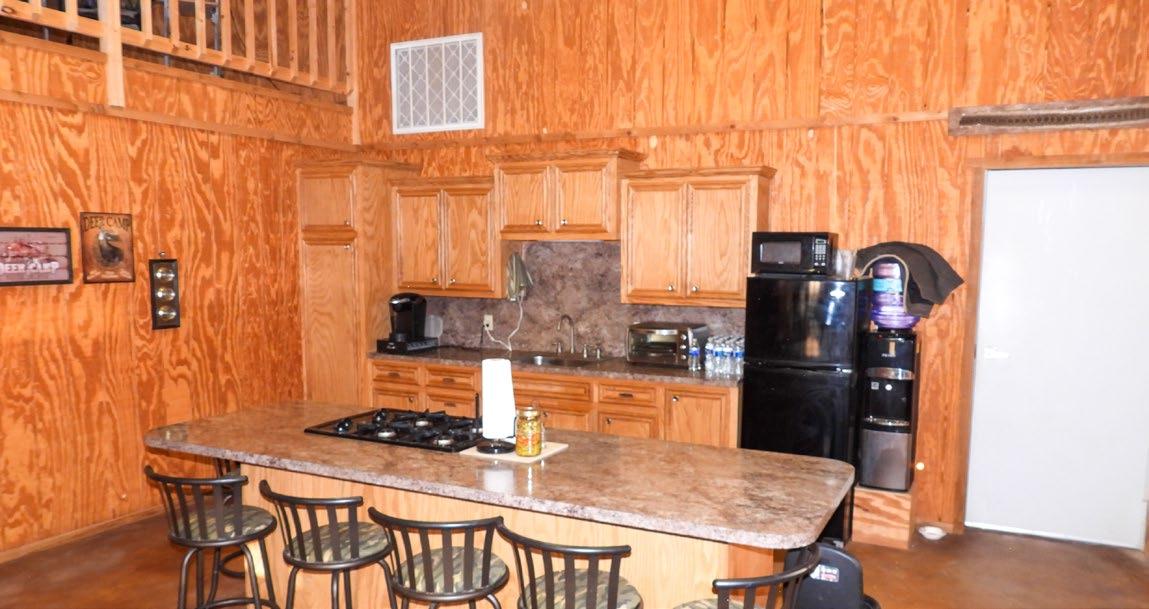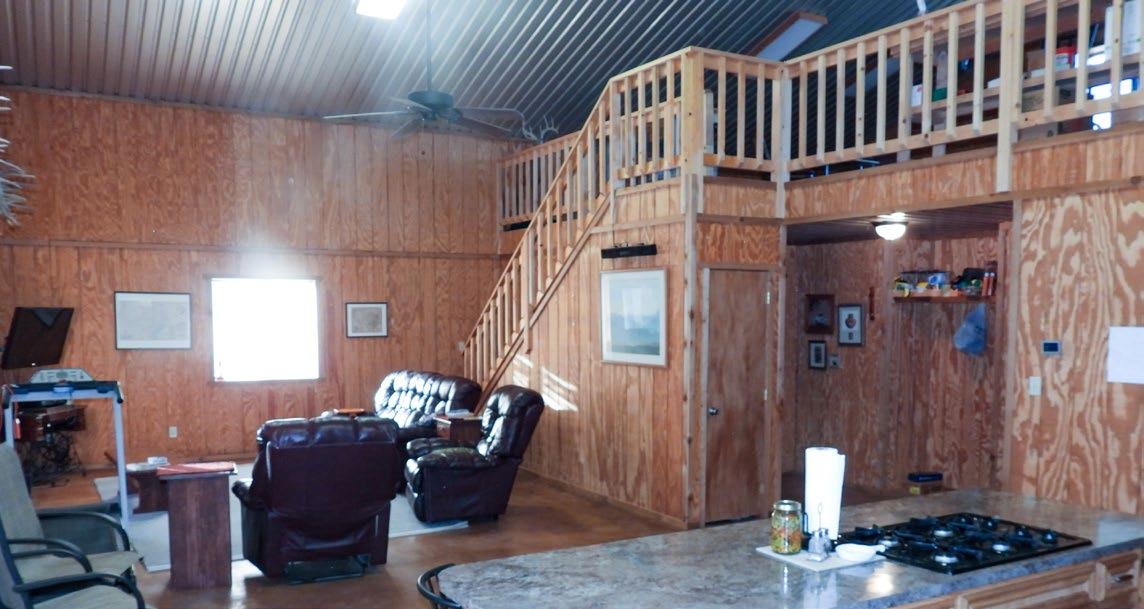 The ranch is improved with a barndominium featuring two bedrooms and two bathrooms. A small kitchenette, loft, and open living area make this a very functional and comfortable headquarters.