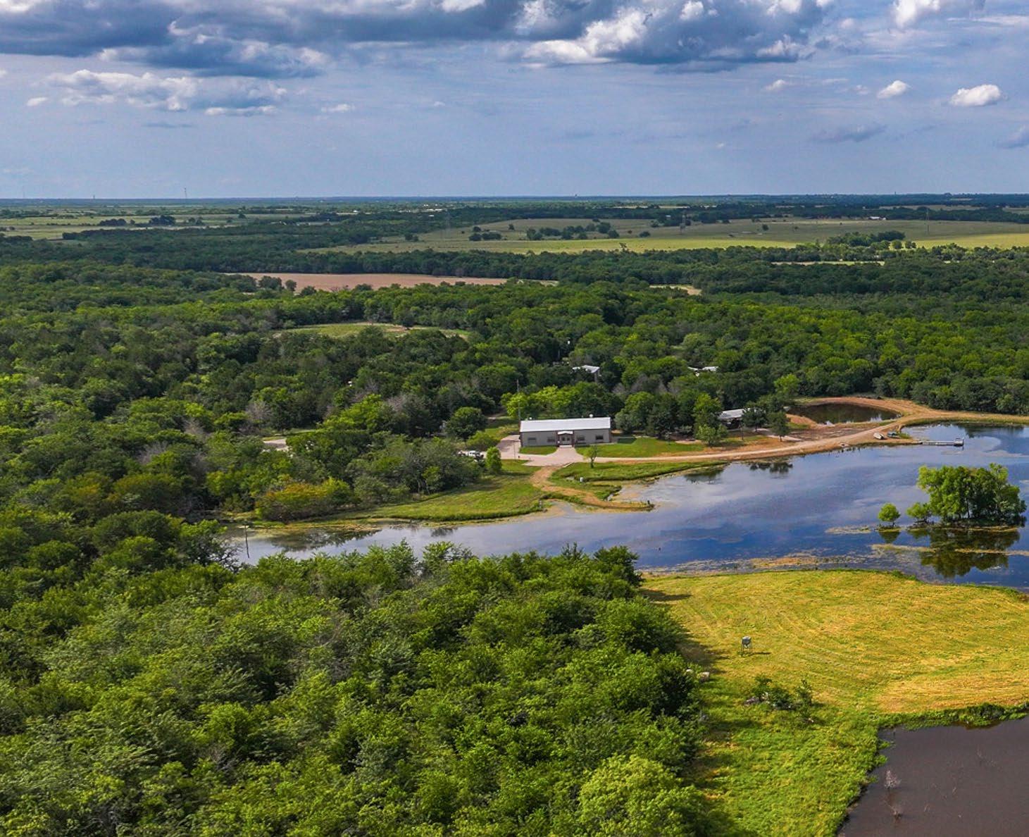 At the heart of the ranch lies a scenic 10+ acre lake, renowned for its excellent fishing, including bass, catfish, and sunfish. Numerous additional ponds are spread across gently rolling terrain, shaded by mature burr oak trees and surrounded by thriving native habitat. The land supports abundant wildlife—deer, dove, ducks, and geese—and currently benefits from a wildlife tax exemption. A dedicated dove field and on-site shooting range enhance the property’s appeal to outdoor enthusiasts.