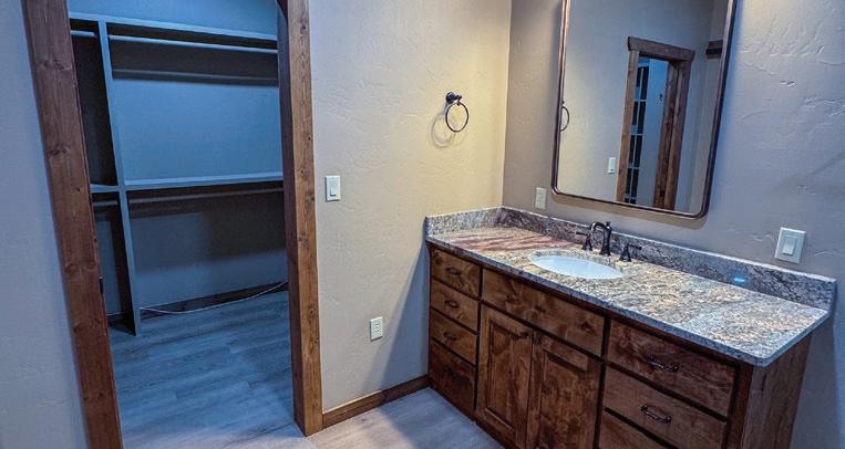 Improvements consist of an extremely nice two-story barndominium with approximately 2,160± sq. ft. of living space along with two shops. The living space of the barndominium features two bedrooms/ two full-on suite bathrooms and large walk-in closets. There is a nice kitchen that is equipped with high-end KitchenAid stainless steel appliances and rustic alder cabinets. There are granite counter tops throughout, including the baths, kitchen, and island with sink. A pantry and ample storage are included. The laundry area is off the kitchen, and a mudroom area with a large sink leads into the shop. The second story is a large game/ media room and is 800± sq. ft. and comes with a 72’’ TV mounted on the south end of the room with a high-end surround sound system that conveys as well. A 12-foot-wide covered front porch is located on the front.