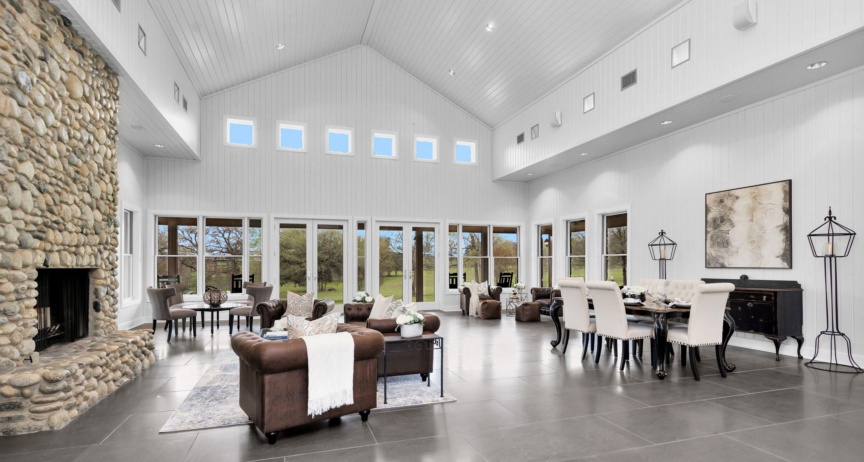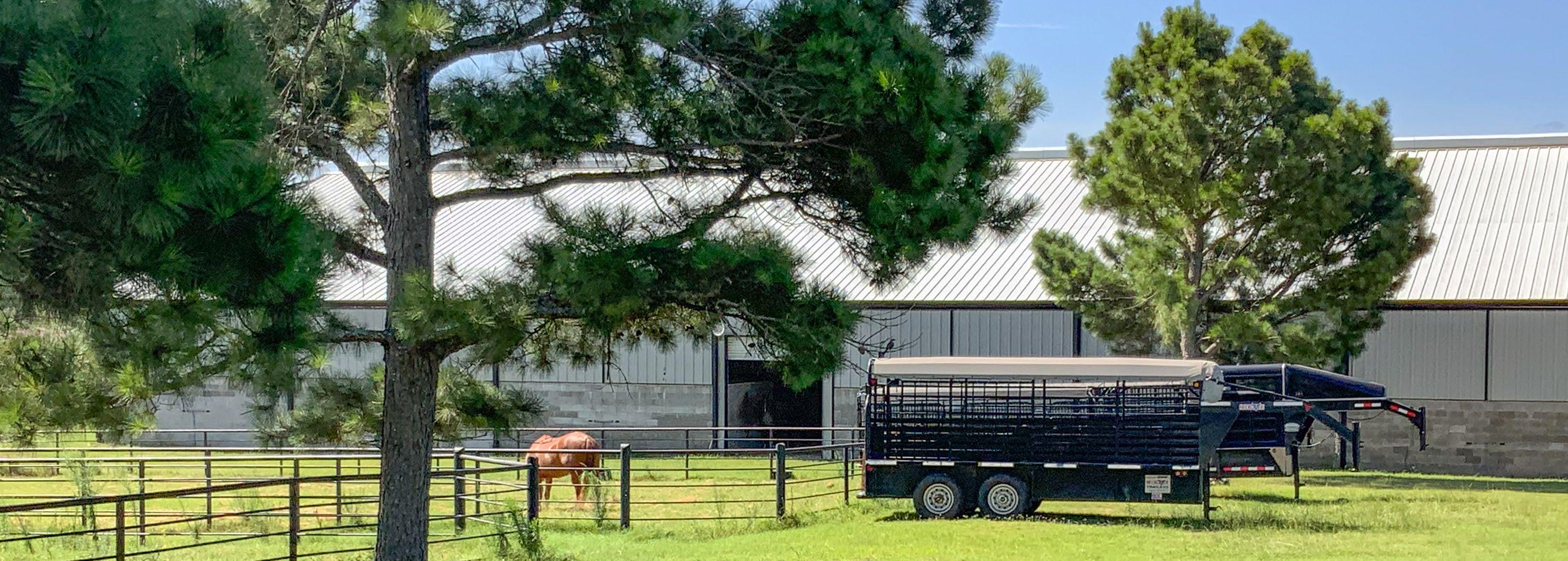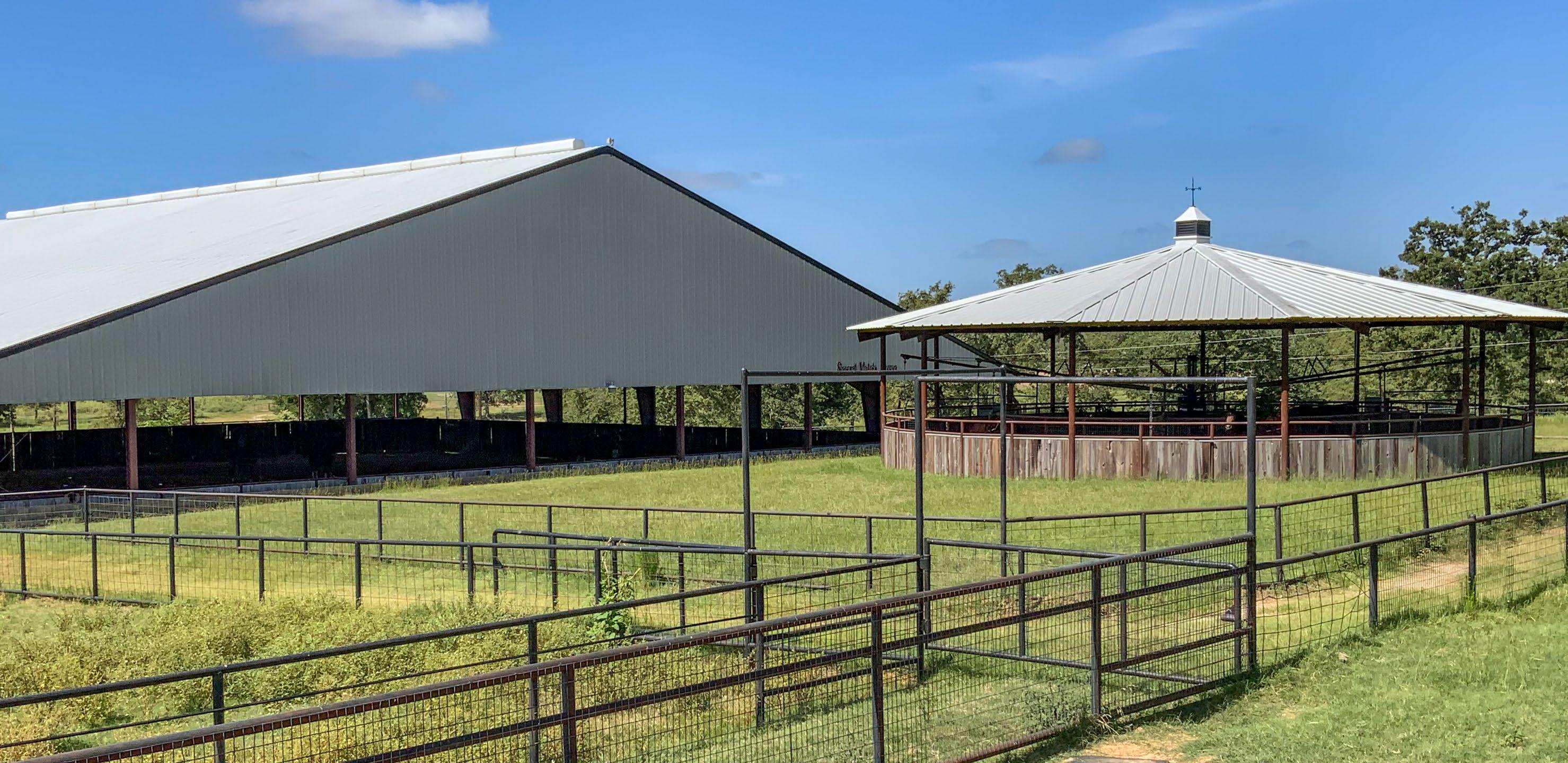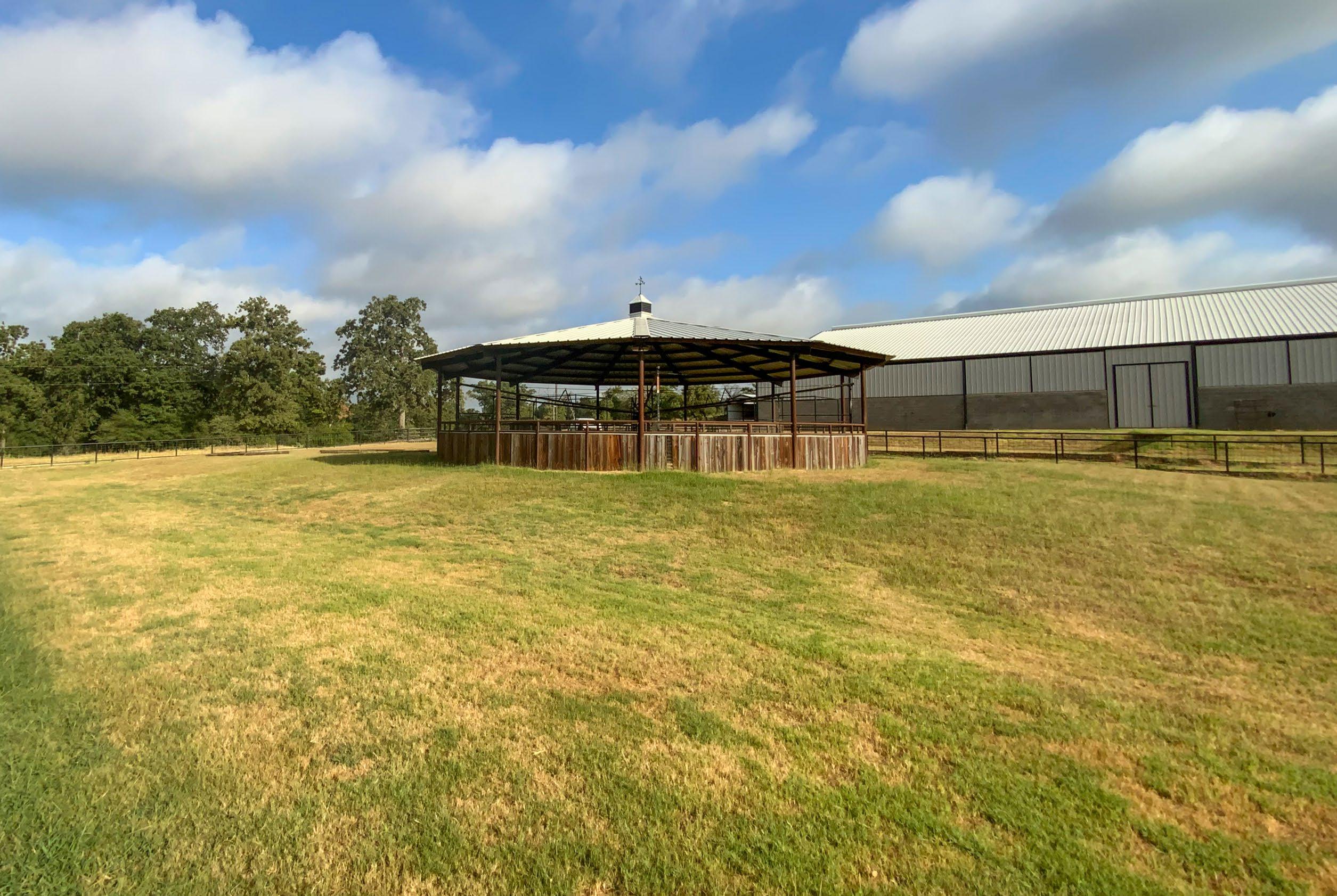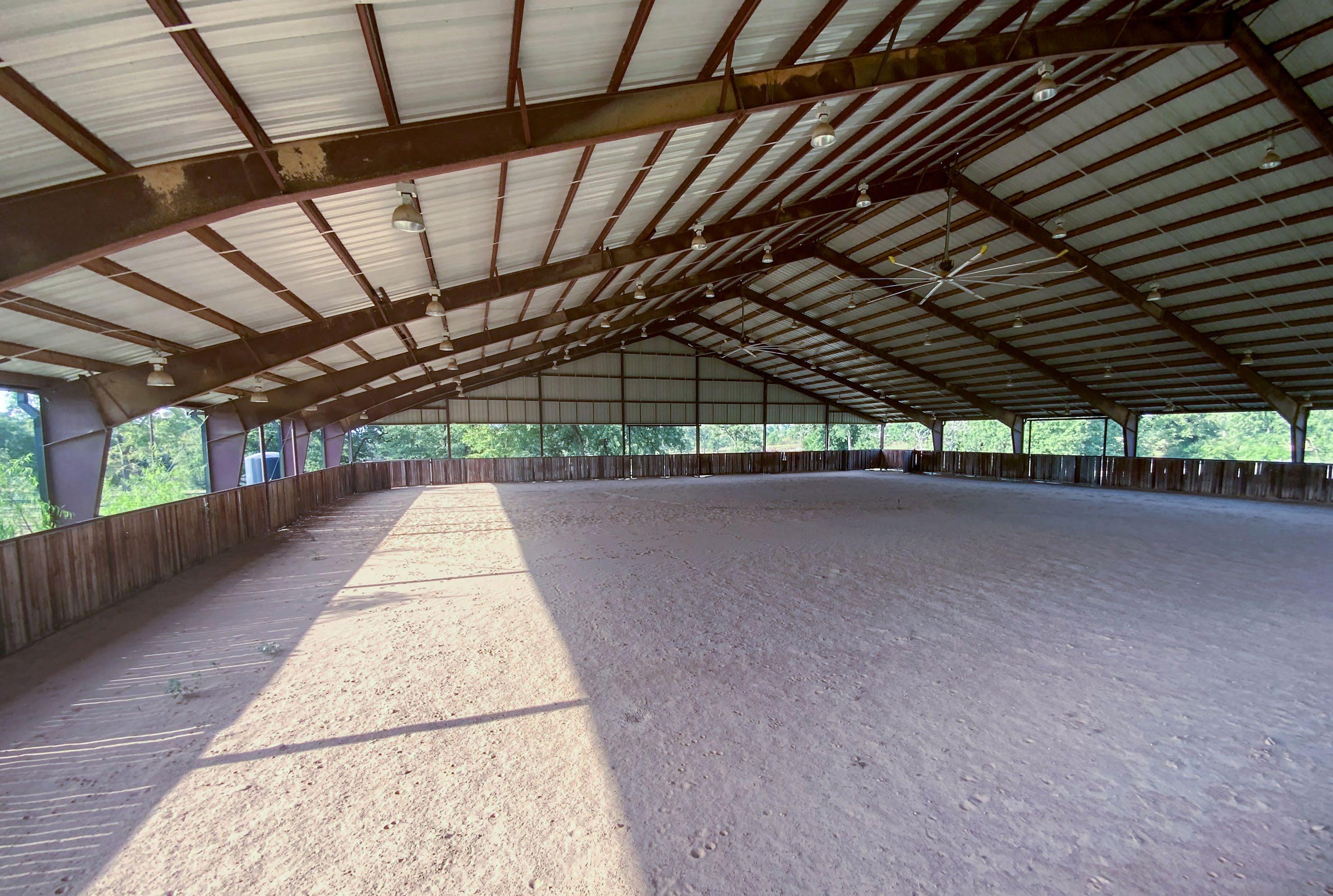 Located a short distance from the house is the enclosed horse barn with 40 stalls, tack room, wash area and plenty of storage. The covered and lighted arena is located next door with a covered, lighted Priefert horse walker by its side.