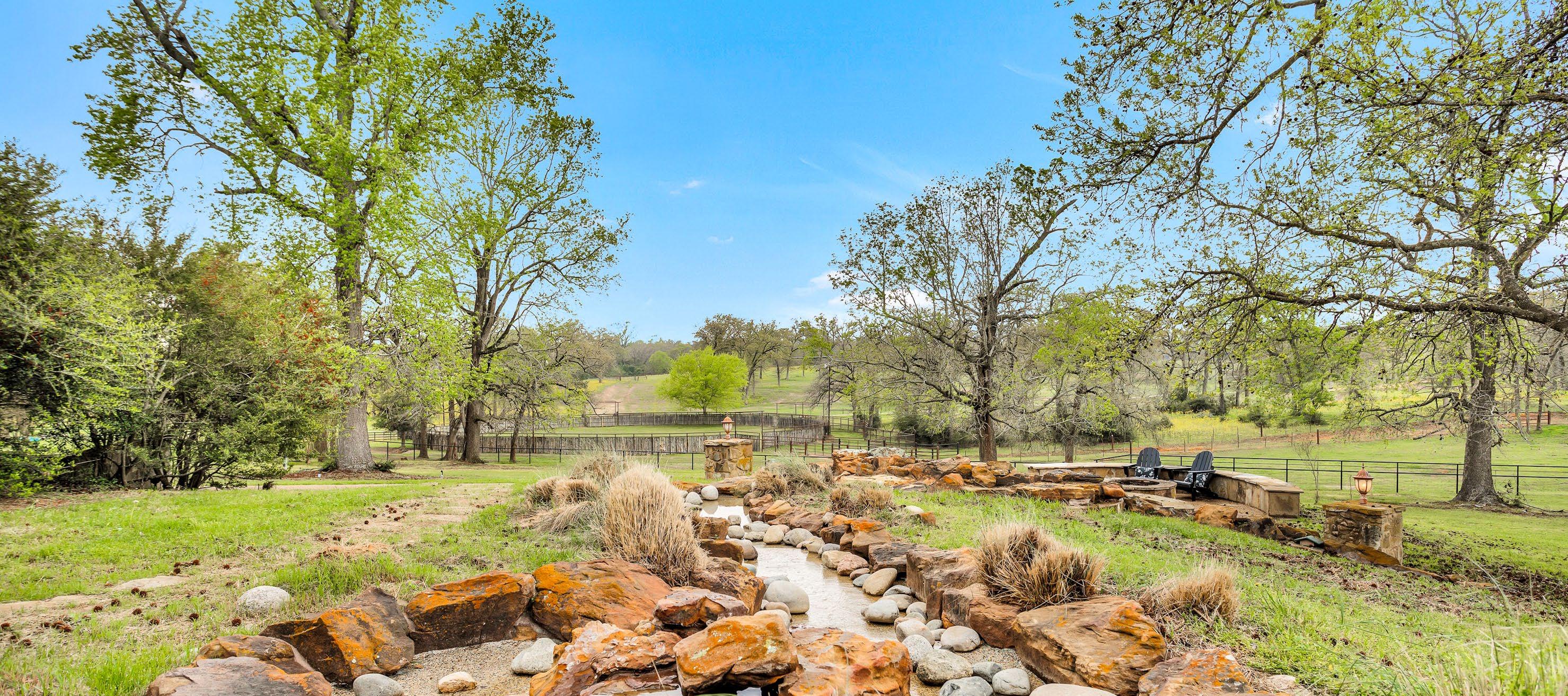 Crooked Creek Ranch is located a few miles east of Centerville, Texas off Highway 7 on F.M. 811. The 40± acre property with custom home, pond, 40 stall horse barn and covered arena is centrally located about halfway between Dallas/Ft. Worth and Houston off I-45. The property is beautifully improved with pipe fencing throughout and improved roads circling the entire ranch. There are several entrance options off F.M. 811 with approximately 500 feet of frontage on the highway.