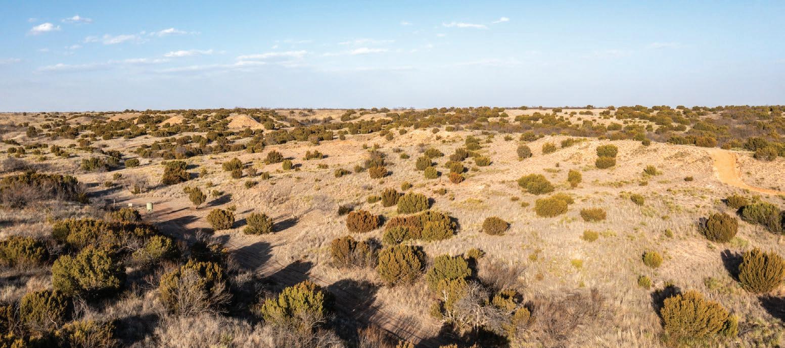 Some areas of the ranch have been grubbed, with brush selectively sculpted and manicured for wildlife habitat and to create a picturesque setting. As is typical of the area, cover typically consists of mesquite and juniper with soapberry and hackberry trees being relatively common. Native grasses include buffalograss, as well as varieties of grama, bluestem, and tobosa. Grass turf is in very good condition throughout the ranch.