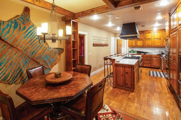 The “barn” as it is affectionately known to the family, serves as the ranch lodge. This impressive structure was very well built and contains four bedrooms and two full bathrooms, each offering tile showers with glass doors, one-half bath, a large kitchen with granite counters, a large island, a gas stove with vented hood, and plenty of space to cook for many guests. The focal point of the lodge is the massive rock fireplace. The southwest side of the barn has a large, covered patio, while the east side is a shop/workroom, complete with an underground storm shelter.