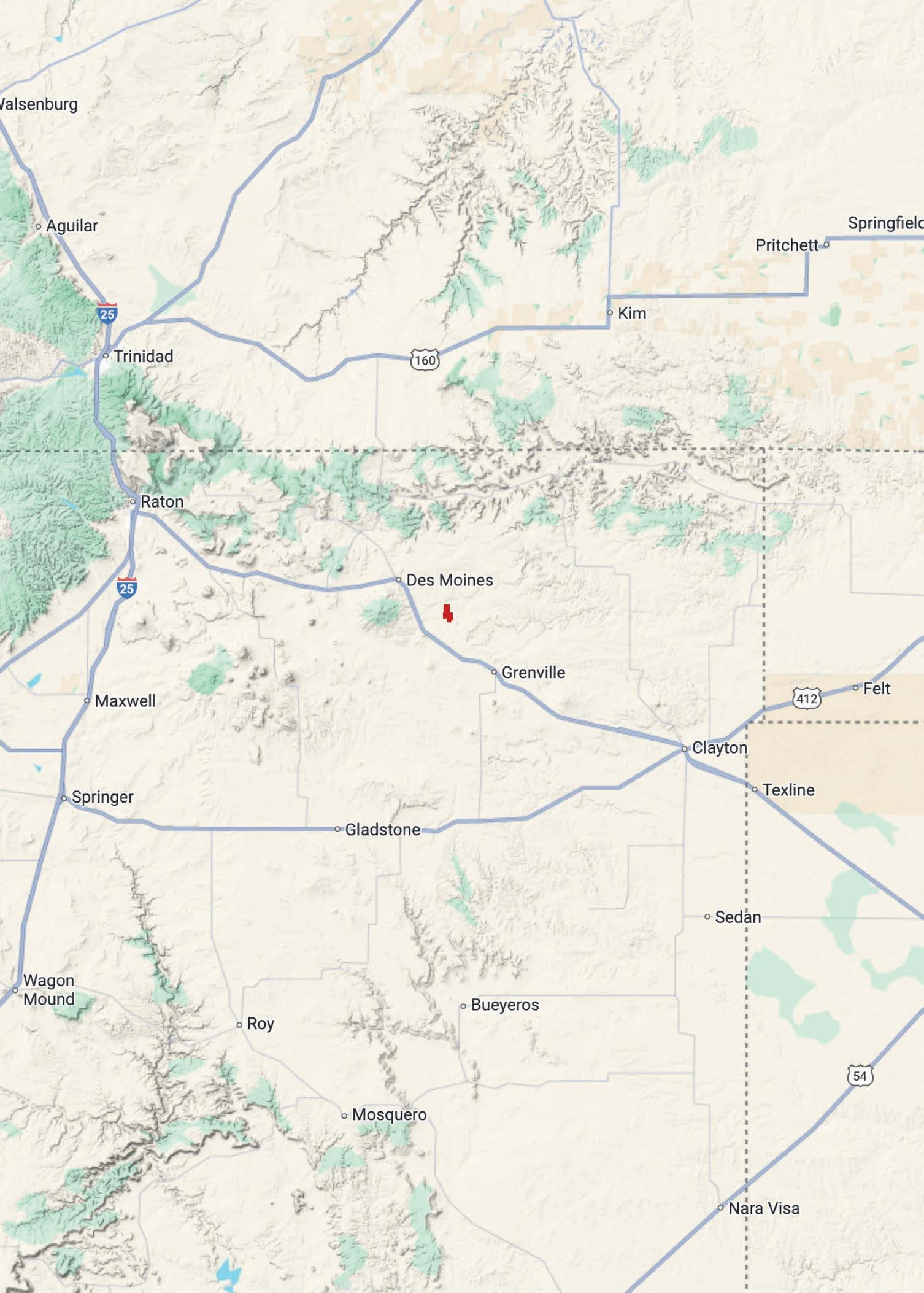 We are excited to announce another quality ranch property in Northeastern New Mexico. Nestled in the southern foothills of the “dormant” Capulin Volcano lies a special 756 deeded acre property we call the Hi Lo Springs Ranch. This acreage has spectacular views in all directions and is located southeast of Des Moines. This quaint town is about 55 minutes east of Raton, New Mexico via US Highway 64 to Des Moines, then east on County Road AO51. The Hi Lo Springs Ranch has desirable access.