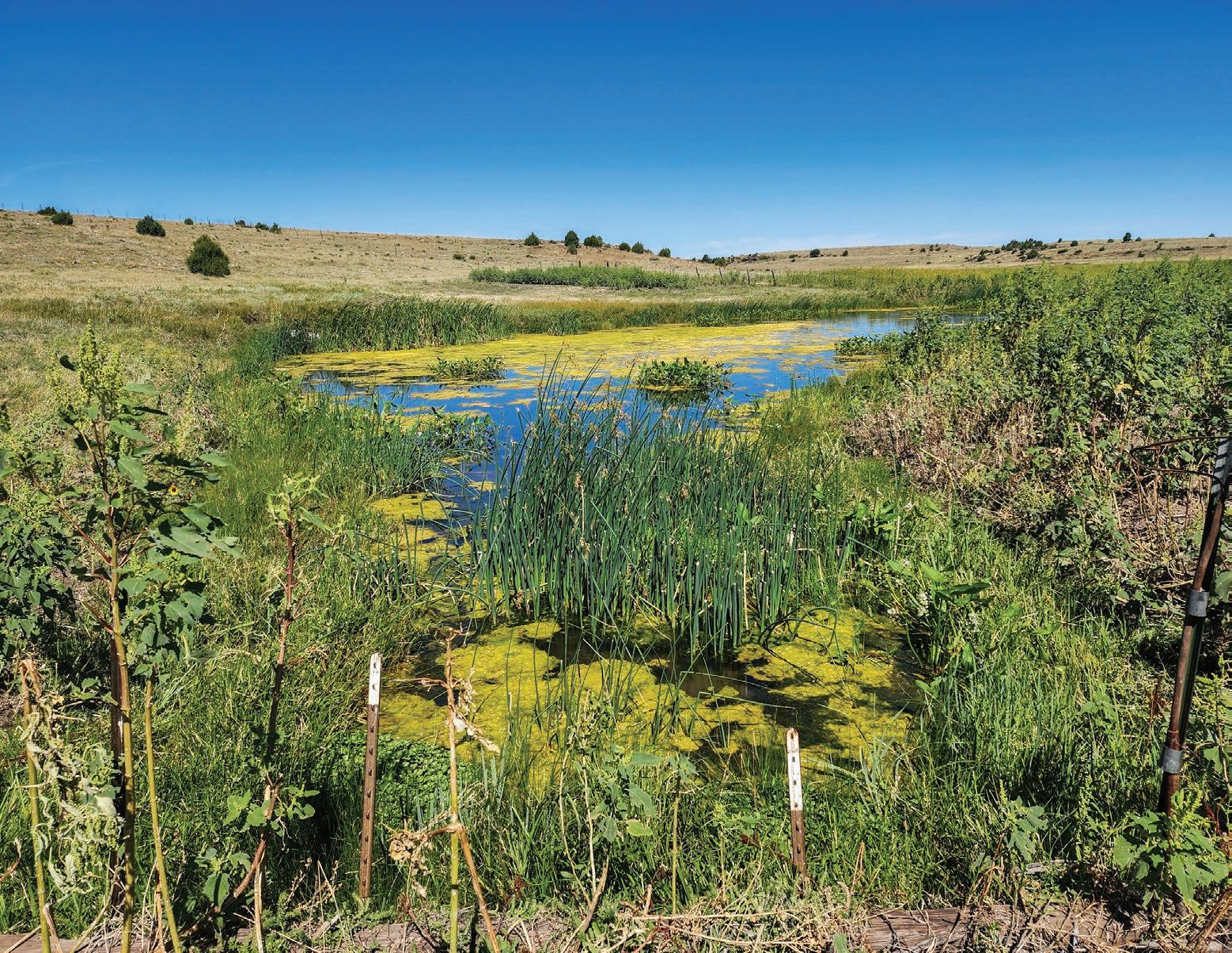Permanent water is provided by the Hi Lo Spring that feeds the main pond. Water flows to a second larger pond that has been used to irrigate the meadow below the pond. The Hi Lo Spring has a declared irrigation water right and the New Mexico Office of State Engineers file No. is SP-2694. The NMOSE file indicates 18.55 irrigated acres with an annual allocation of 46.37 acre-feet. The ranch also has a strong solar well that provides year-round water for livestock and wildlife.