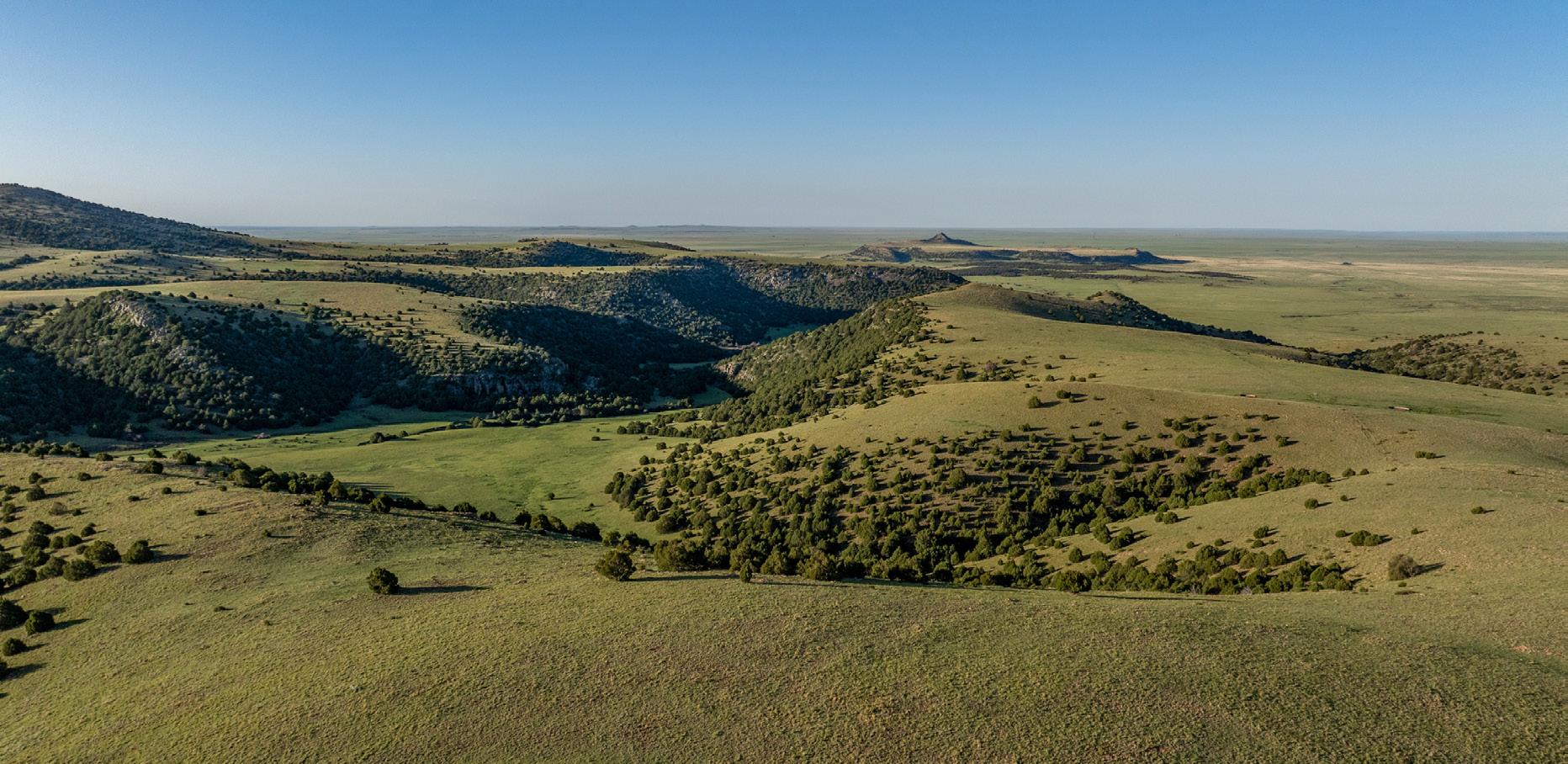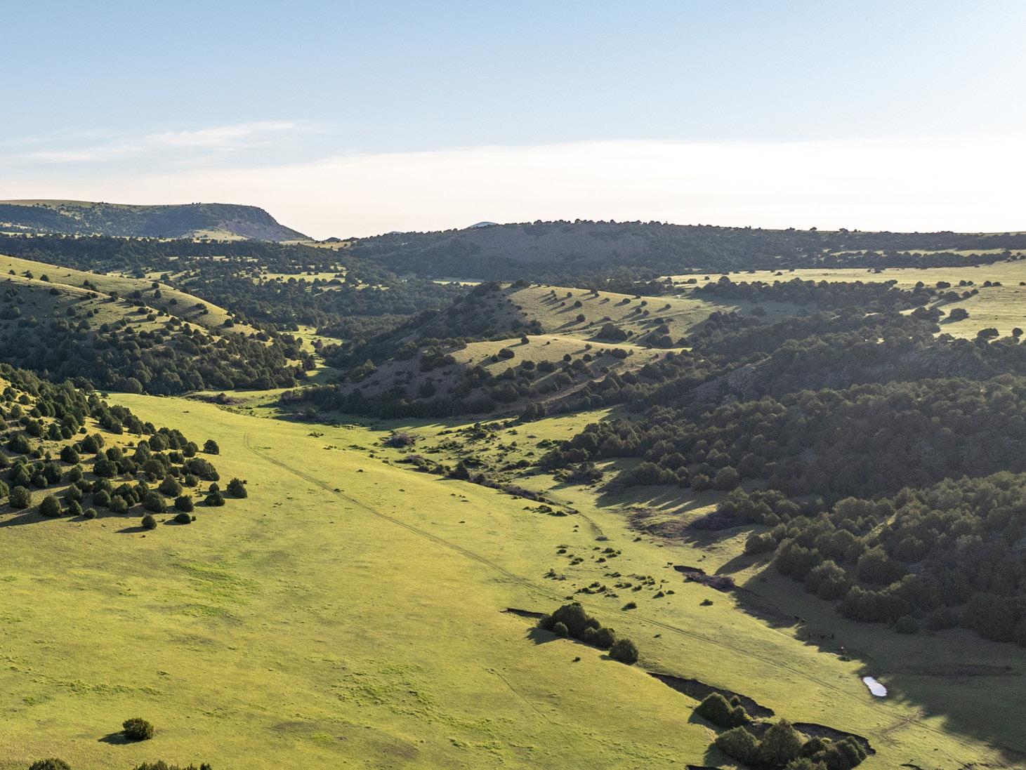 The ranch’s open grazing areas are covered with hardy, palatable native grasses such as grama, western wheatgrass, side oats, and bluestem varieties. In all, approximately 75% of the property is considered prime livestock grazing land, with the remaining 25% comprising scenic highlands, broad valleys, open meadows, and sweeping mesa tops.