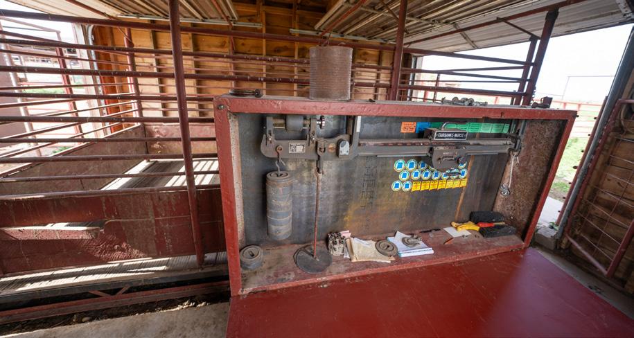 The south portion of the ranch is equally robust, with 11 wells in total—five electric submersible, two solar, two windmills, and two unused wells offering potential for expansion. This half supports 13 pastures and eight traps, alongside two additional sets of pipe working pens. Operational infrastructure includes a 10,000-pound livestock scale, two 36-ton cake bins, and a network of welldesigned outbuildings: a 40’ x 60’ pole hay barn, 40’ x 8’ storage container, and a 36’ x 80’ barn featuring a loft, stalls, and partial concrete flooring. Equipment is housed in a 110’ x 24’ metal building with six stalls, complemented by an 11’ x 24’ tack room and a 23’ x 24’ shop, both set on solid concrete pads.