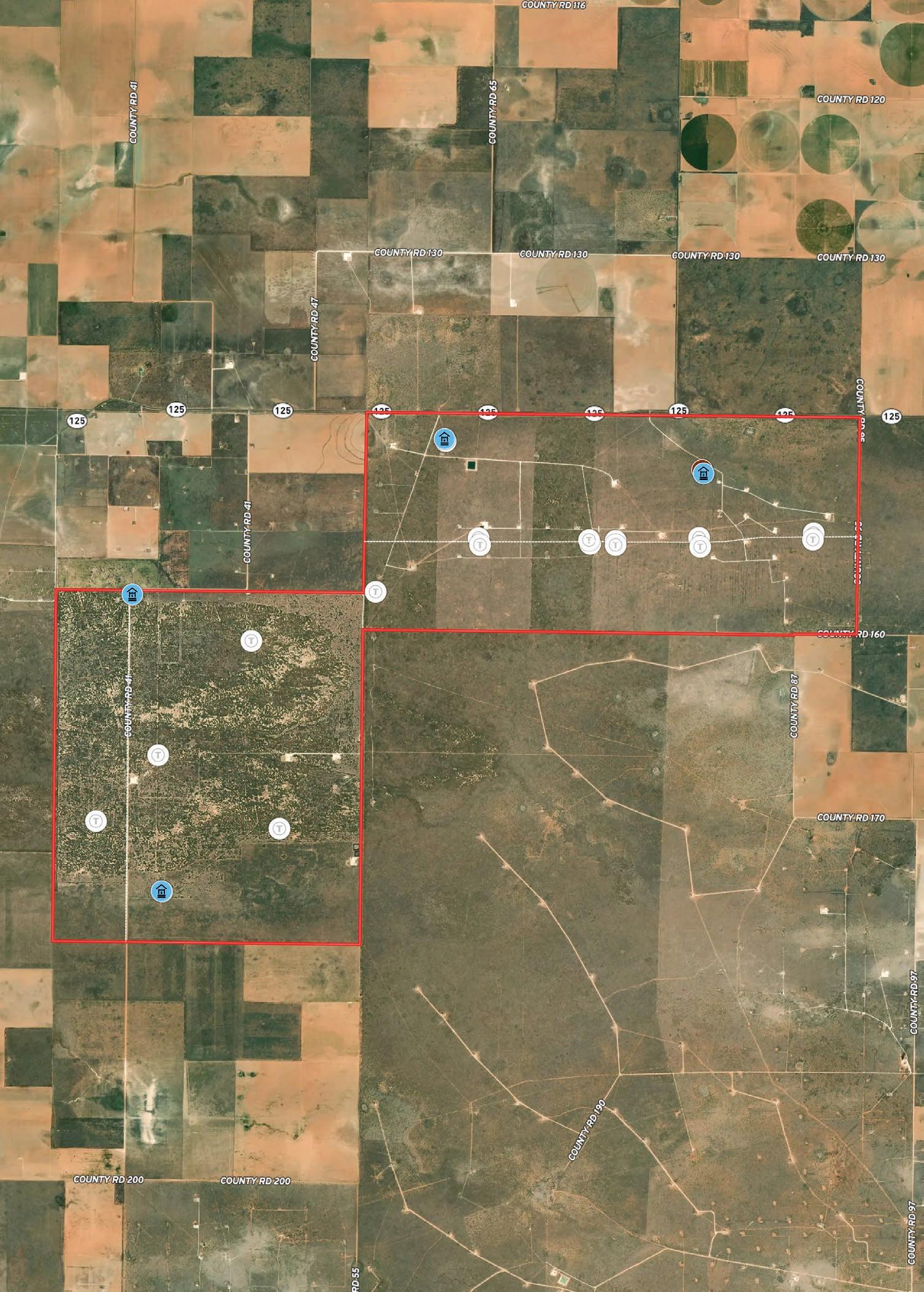The Lehman Ranch is comprised of two contiguous rectangular blocks, with each containing approximately 5,000 acres. The northeast block is situated on the south side of SH 125 and the west side of CR 95. This tract has a level to undulating terrain. This tract is a combination of sandy shinnery country and tighter mesquite country and is cross fenced into two main pastures. Grass cover in this portion of the ranch is dominated by grama and bluestem and is productive from a livestock grazing standpoint.