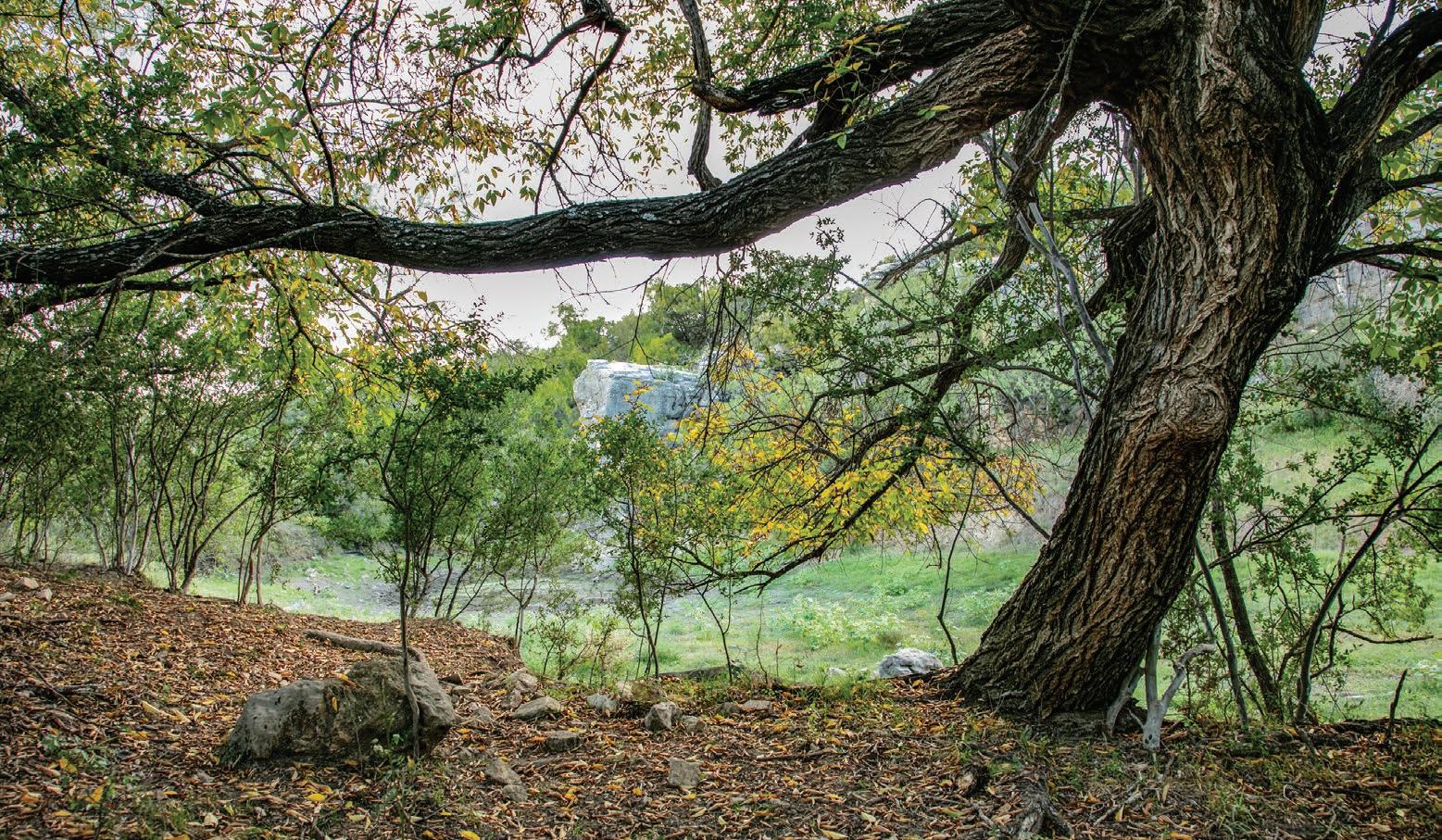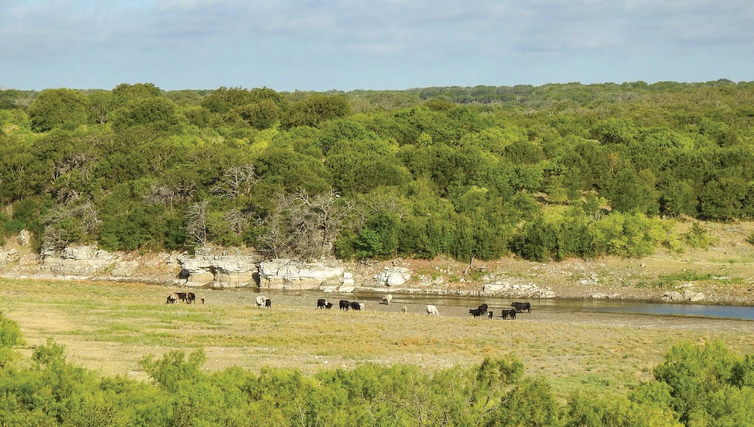 The ranch has been operated in recent years for cattle production and hunting. The western ¾ of the ranch is gently sloping to more sloping along several tributaries that flow into Pillar Bluff Creek. The terrain offers excellent views of the surrounding countryside. The soils are Hensley series and are a reddish-brown clay loam, with a good turf of native grasses. This area of the ranch has moderate to heavy tree cover, including live oak, post oak, elm, mesquite, and cedar trees. The eastern portion is more level with Oakalla silty clay loam soils. A portion of this area was in cultivation in the past with about 14 acres on the north side of the creek currently being used for hay production. Here the creek is lined with large pecan trees. The elevations across the ranch range from 1,100 feet along the creek on the east end to 1,260 feet above MSL in the northwestern portion of the property.