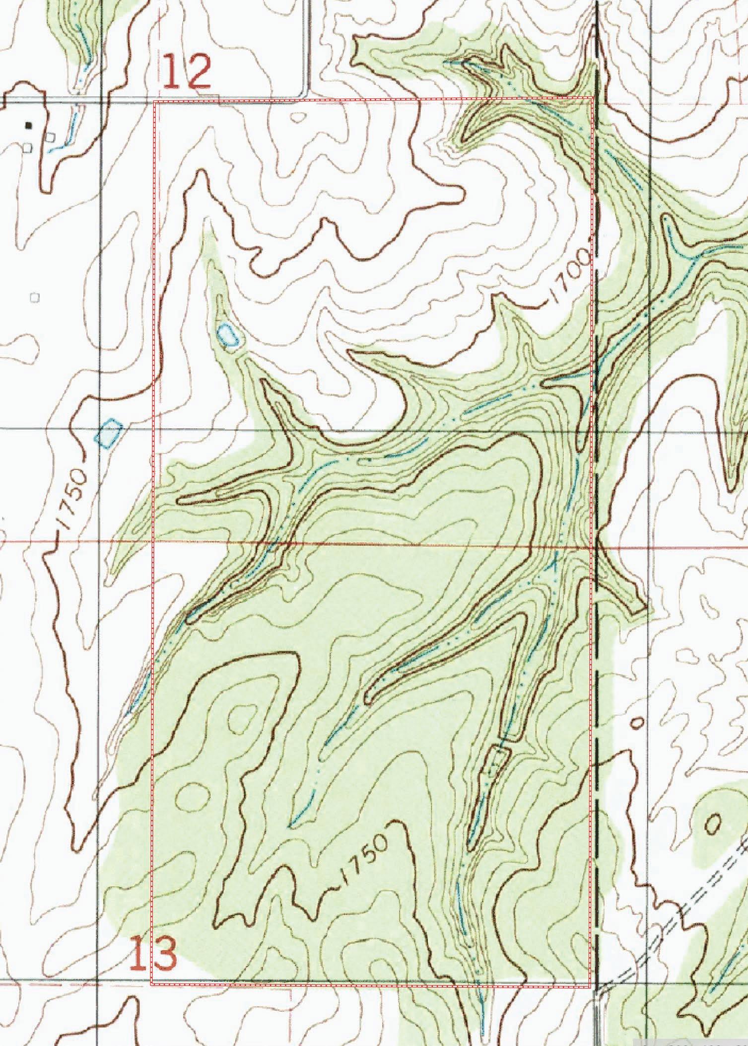 The topography of the Vista Ranch is mostly rolling with a large wet weather creek running east and west through the center of the ranch. There is a very dense canopy of cover over most of the ranch that provides great wildlife habitat. There is an excellent turf of grass on the property. Elevations on the ranch range from 1,670 ft. to 1,790 ft. draining to the wet weather creek in the center of the property.