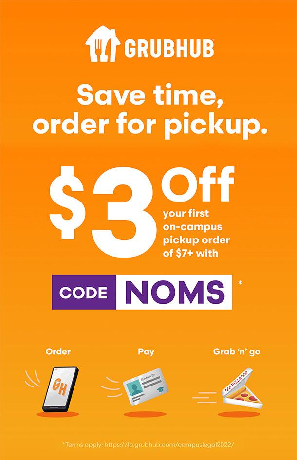 Did you know you can order from Grubhub for pickup and delivery? Use code NOMS for $3 off your order!