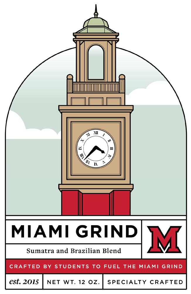 Miami Grind coffee is a collaboration between Miami University and Rooted Grounds. They are an alumni owned creator of small batch coffee in West Chester, Ohio.