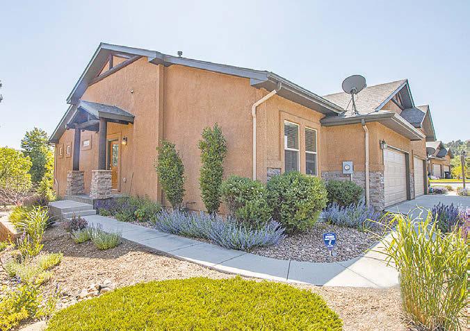 Open concept 2673 sq. ft. 3 bed, 3 bath rancher townhome with total 1-level living. No neighbors behind or in front –only deer, pines, & scrub oak. Finished walkout basement. Spacious master suite. A/C. Gas log fireplace. Vaulted & 9’ ceilings. Attached 2-car garage. Stucco & stone exterior. Trex deck & covered patio. $300/ mo HOA covers everything outside for you. Move-in ready. Seller will contribute $5000 towards buyers closing costs. MLS# 8308112