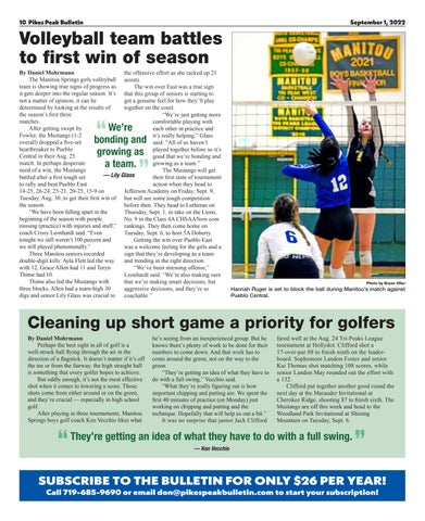 September 1, 2022 Vol. 21, No. 41 Serving Manitou Springs, Old Colorado City and Lower Ute Pass $100 INSIDE RESIDENT SEEKING KAYAKING RECORD PAGE 5 POETRY HEALS WINS PRESTIGIOUS GRANT PAGE 9 SOCCER TEAM STEAMROLLING OPPONENTS .......... PAGE 11
