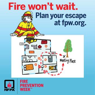 Why: Fire Prevention Week works to educate everyone about simple, but important, actions they can take to keep themselves and those around them safe from home fi res. Th is year’s FPW campaign is “Fire won’t wait. Plan your escape.”