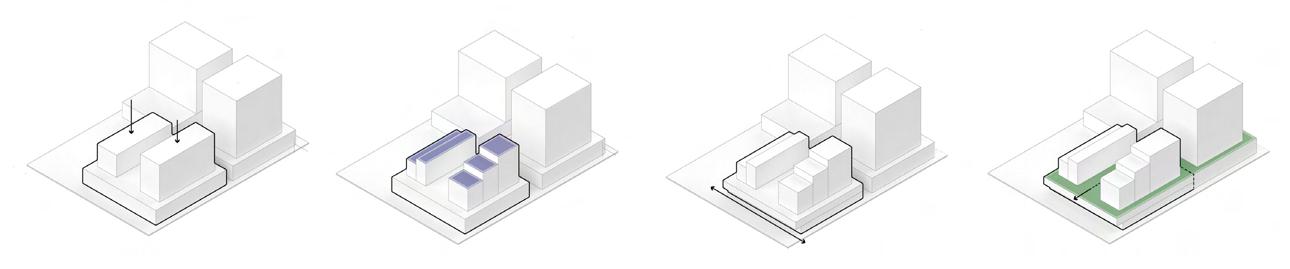 The plinth features a variety of programs to foster a sense of community within the highrise