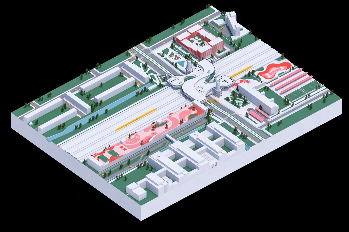 Lombardijen Station was designed in 1968 as a temporary structure meant to be replaced within a five year timeline. The current situation of the site remains the same as its original design with little to no intervention. As such, students were tasked with re-imagining the potential of not only the station but the surrounding neighborhood, in an attempt to bring forth a sense of community and engagement. Through a series of efforts the project aims to revitalize several components of the neighbourhood as independent entities within a greater whole. Each step of the project is intended to provide capital for the next step in the process of creating a revitalized community for Lombardijen.