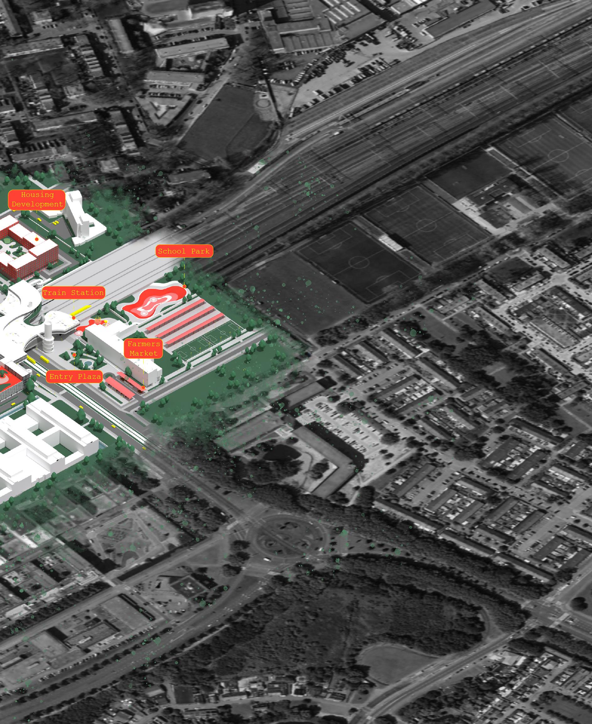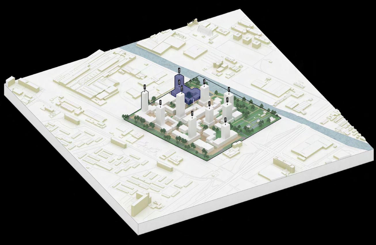 The original masterplan for the Kabeldistrict was crafted by MEI Architects. Students were tasked with the redesign of the plan and their respective tower