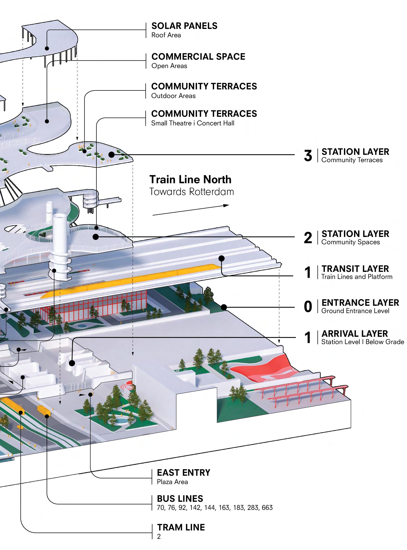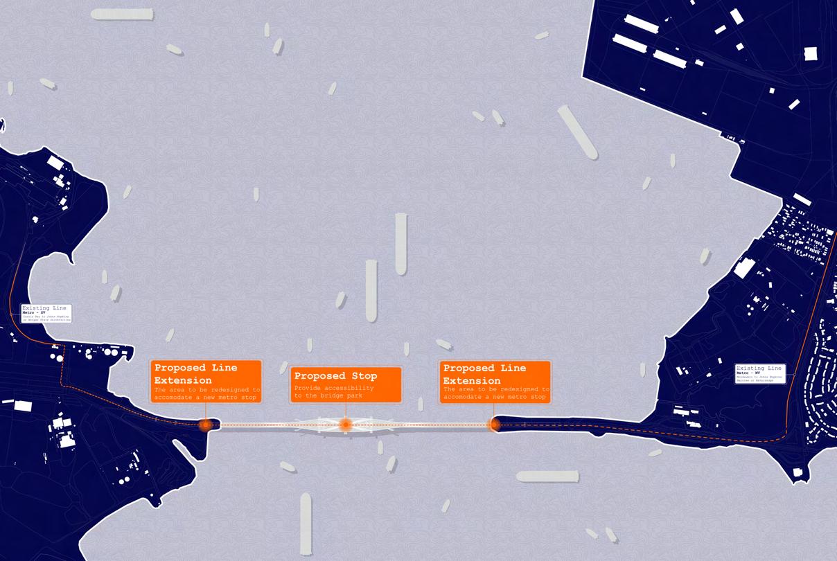 The proposal aimes to become a new point of connection for the community, as such expanding the existing metro line to connect the west and east communities is essential to the projects success