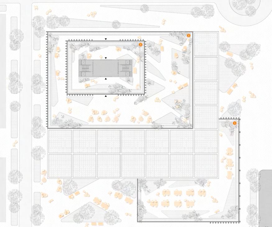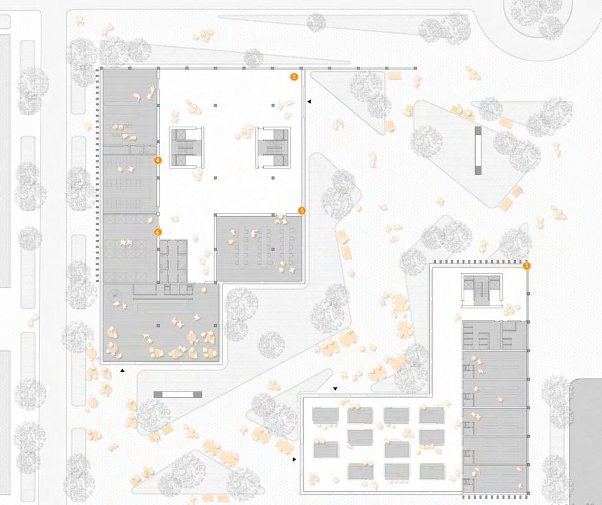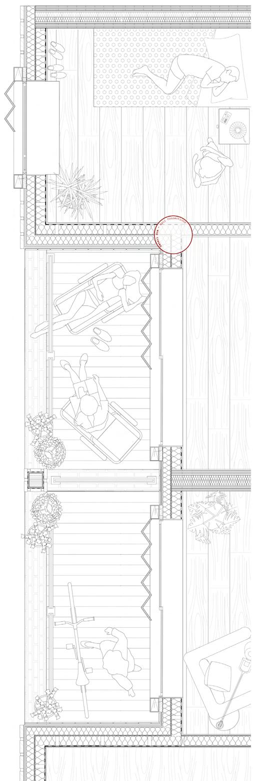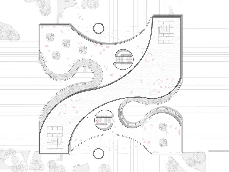 1:200 Representational floorplan of the roof park that spans across all buildings within the masterplan