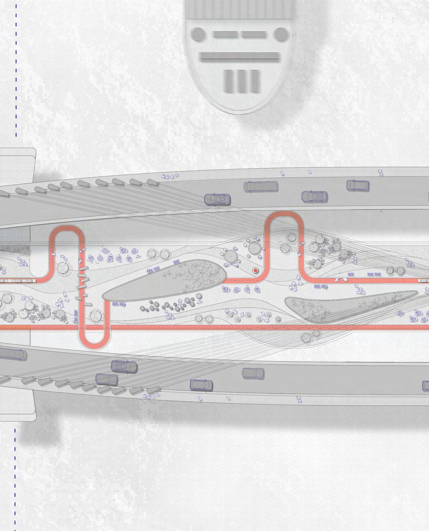 The plan conveys the overall design of the bridge, highlighting its main pedestrian path.