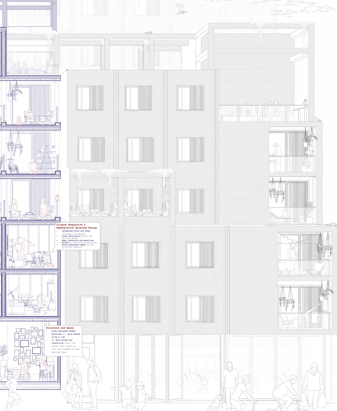 The municipality of Amsterdam designated the design site as a residential area. Students were tasked with dividing and designing the site amongst themselves