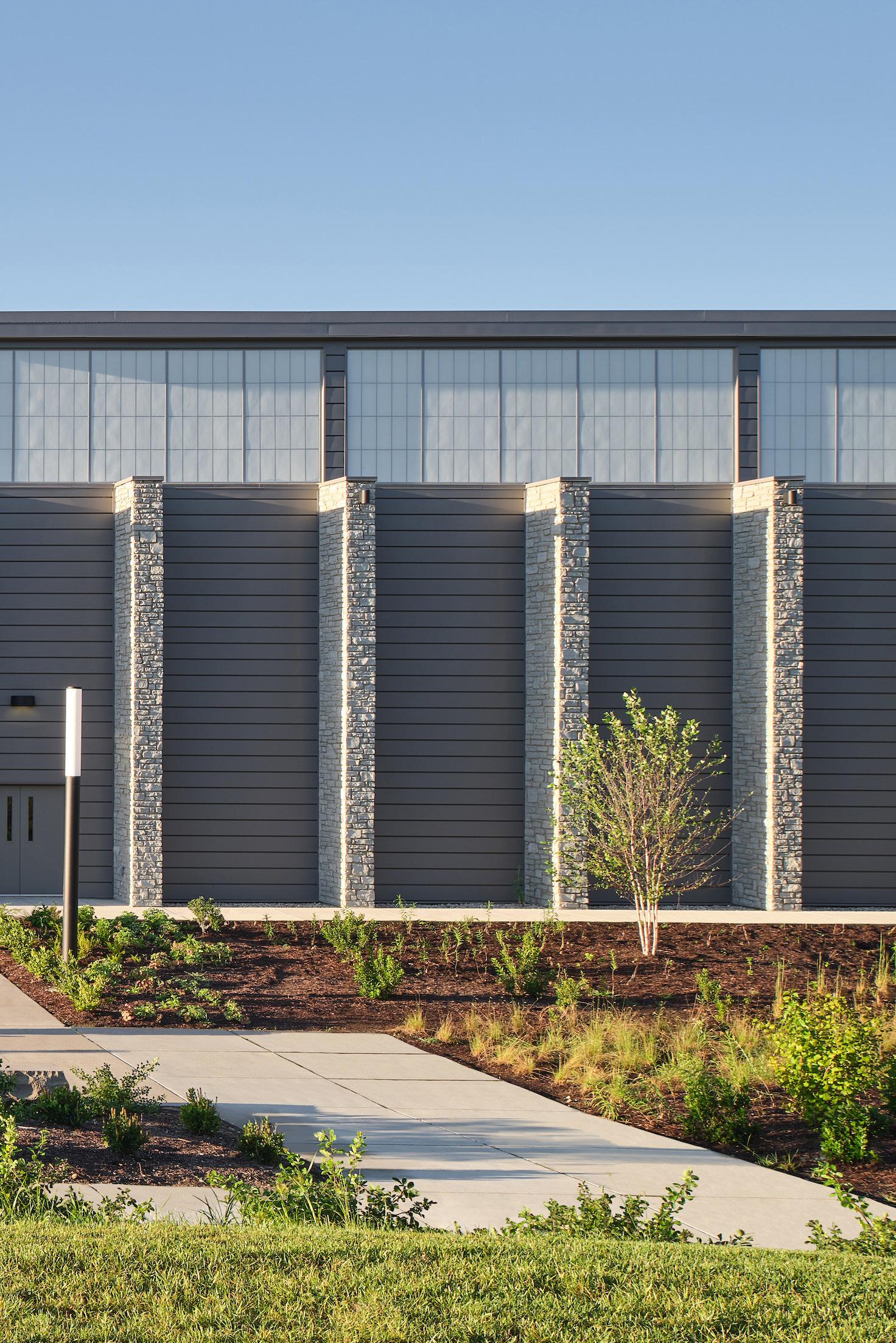 CSO designed the project holistically, integrating the building’s design with its rolling site and context. The parking fields were strategically scaled and designed as a series of smaller areas of paving separated by stands of native plantings and grasses. This site master stroke, which mimics natural sedimentary rock outcroppings, worked with the site’s topography to minimize the visual impact of parking and to provide a