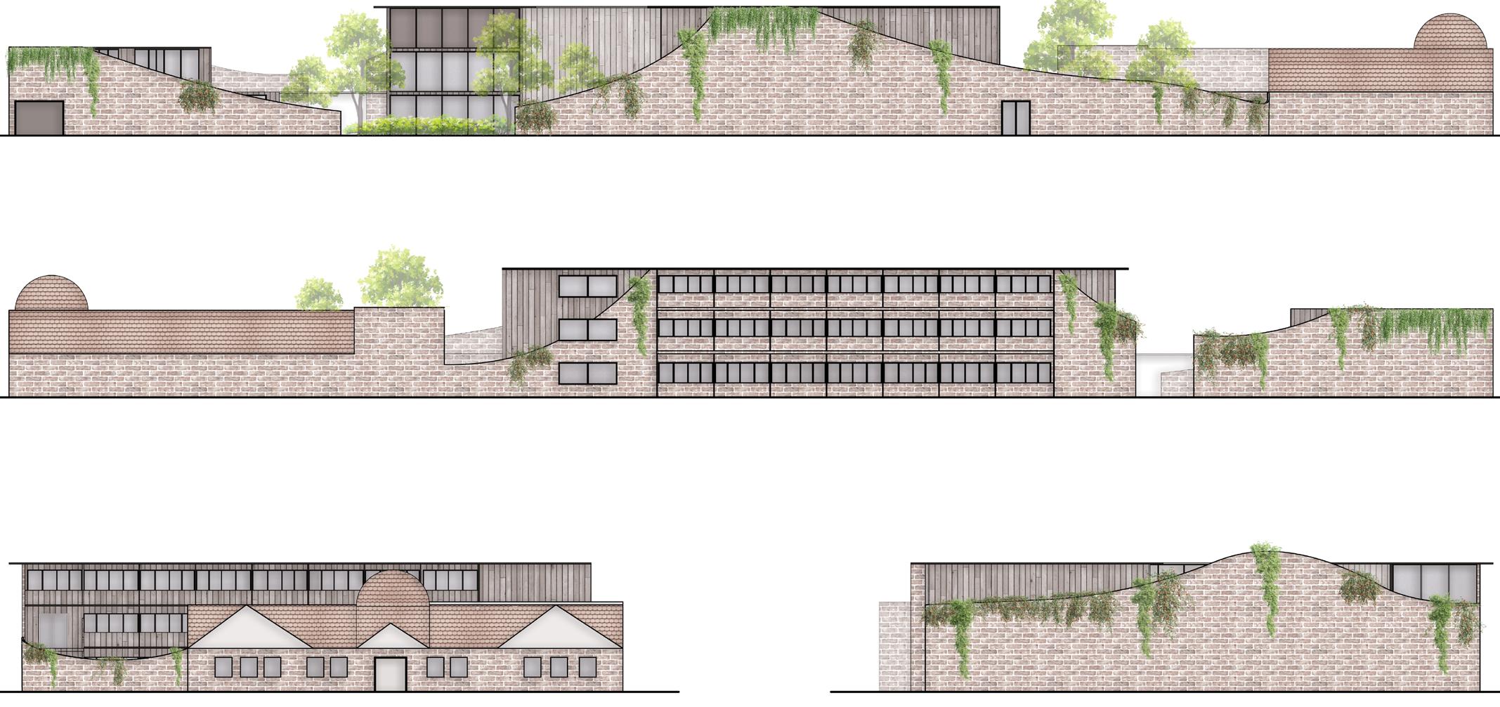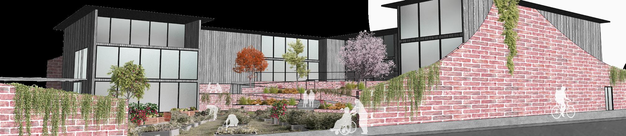 The spaces are centered around either the community garden or the quiet garden so that depending on the activity, the residents and workers always feel an attachment towards the central green spaces.