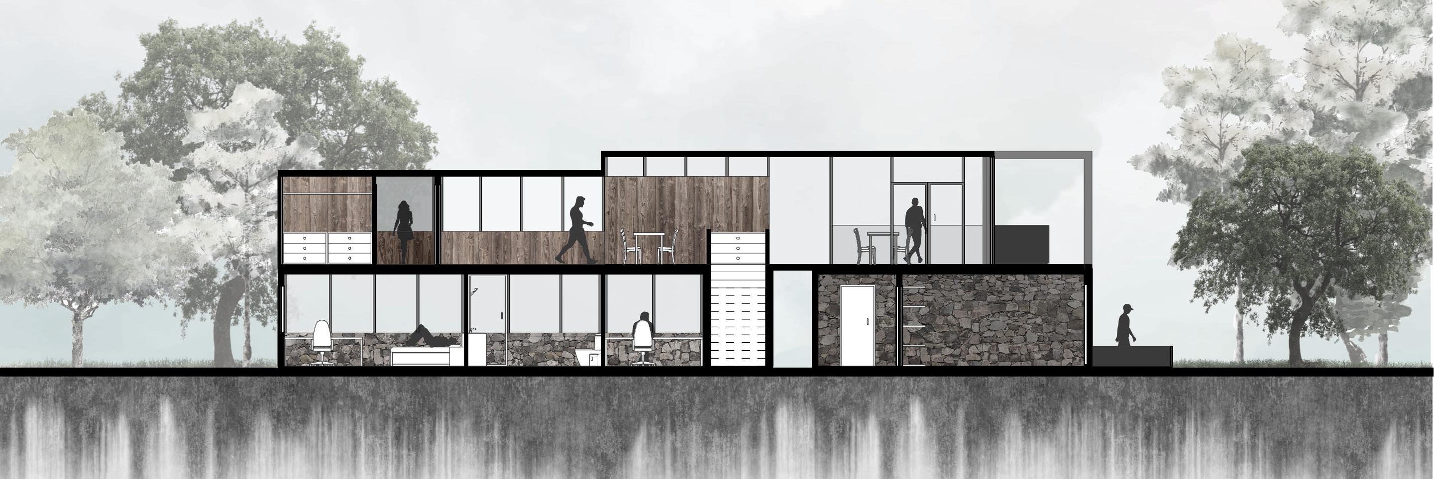 Creating practical spaces adapted to site conditions for both working and living.