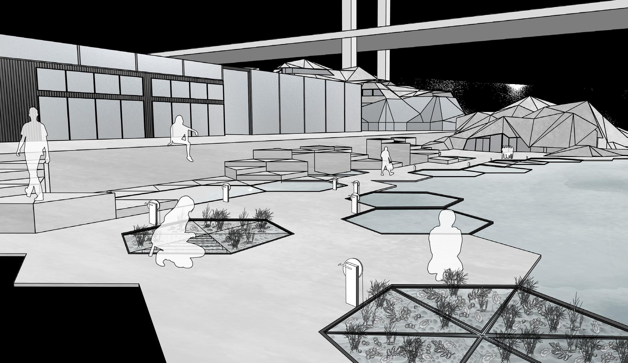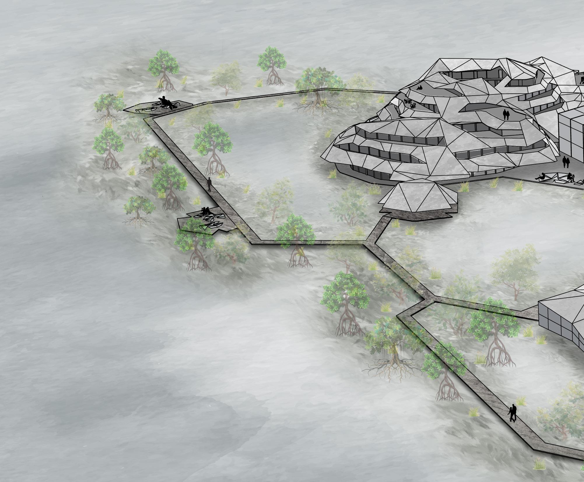 To do this, the design combines marine and environmental research and education facilities for both students and researchers to study and undertake practical coursework that cleans the river and regenerates the natural waterfront ecosystem. Student accommodation is also provided for students and researchers who move to the facility for study and research. Exhibition, lectures, classes and boardwalks allow the public to engage with the facility and learn about the work going on within.