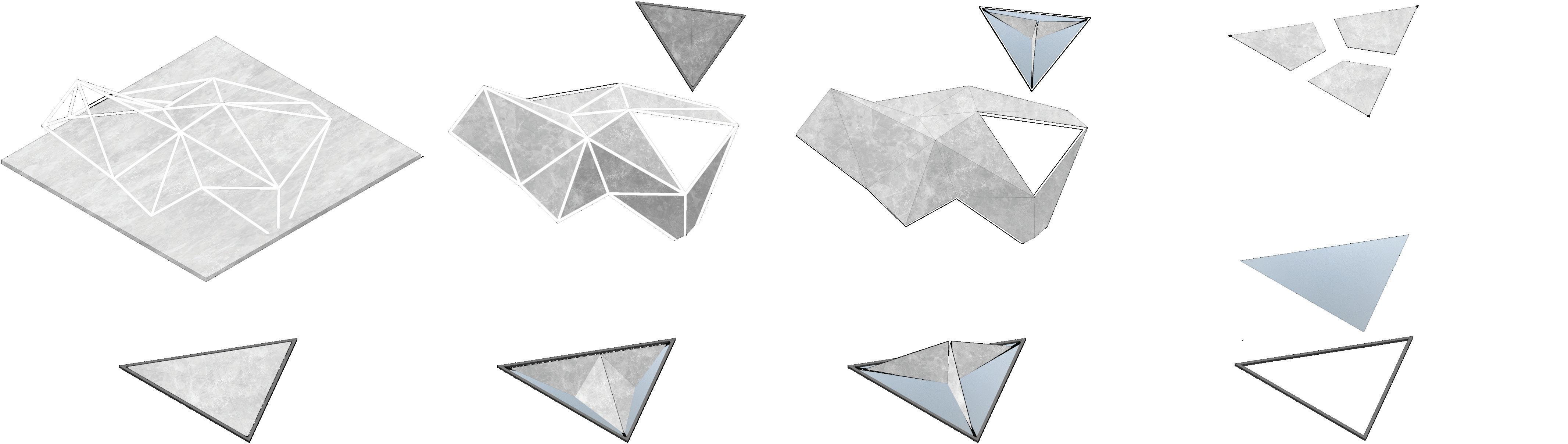 The Resch Tessellation is expanded through spaces to create seating layouts to that are unique and optimised for individual spaces throughout the site.
