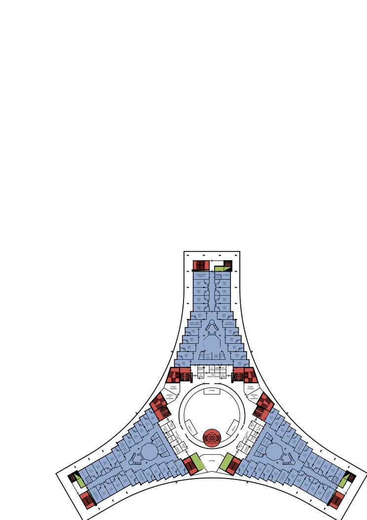 Orientation du bâtiment pour des vues sur des espaces ouverts (pas d’introspection avec d’autres parties du bâtiment) Corps hybride pour