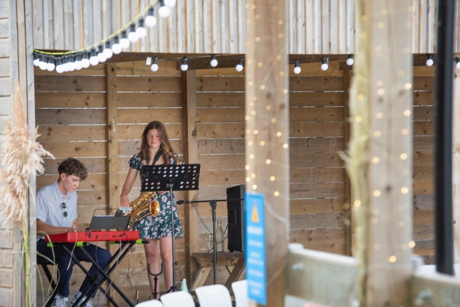 Acousticmusiciansperformingonour waterfrontdeckingorbythebeach Stringquartetscreatinganelegant atmosphere
